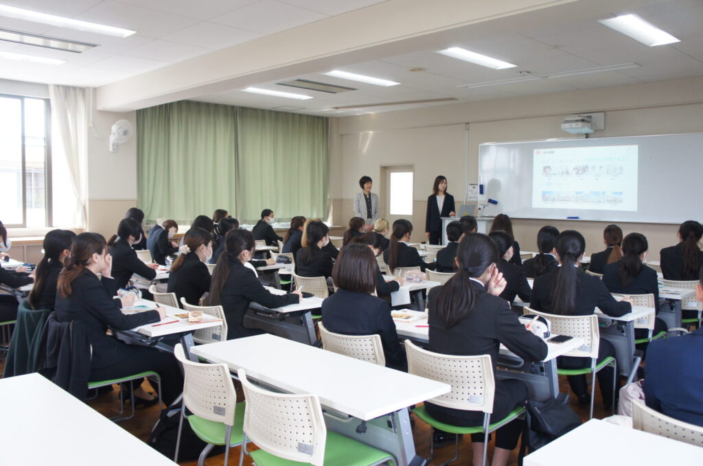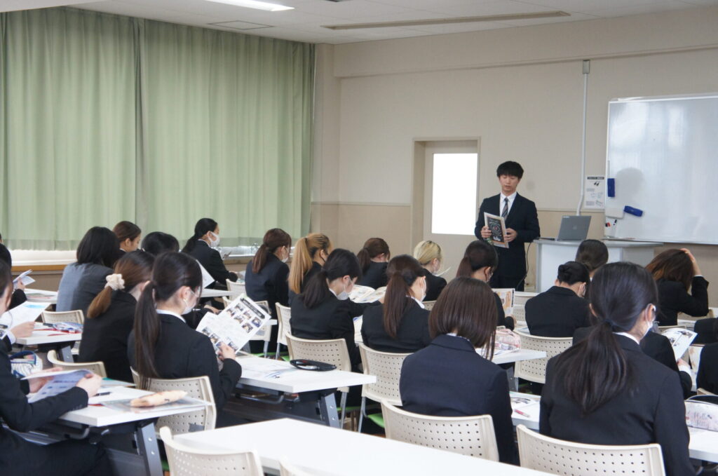 食物栄養1・2年生の第4回キャリアチャレンジでは、「学内企業説明会」が行われました。