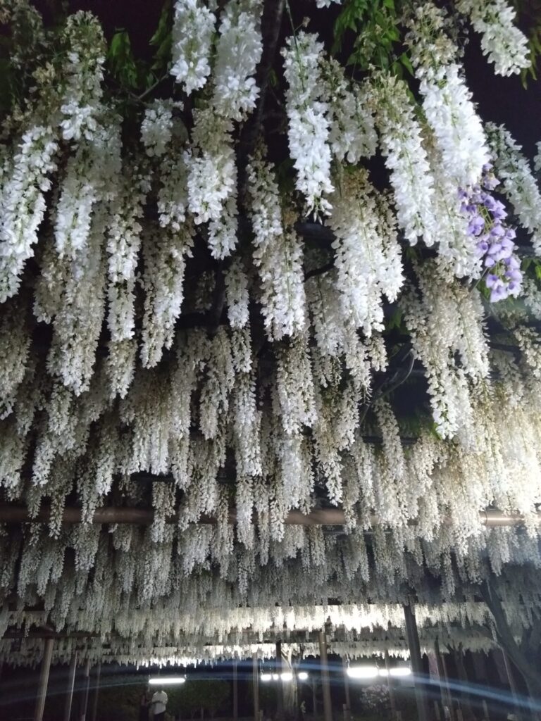 藤まつり中は、ライトアップもされ幻想的な風景を楽しむことができます。