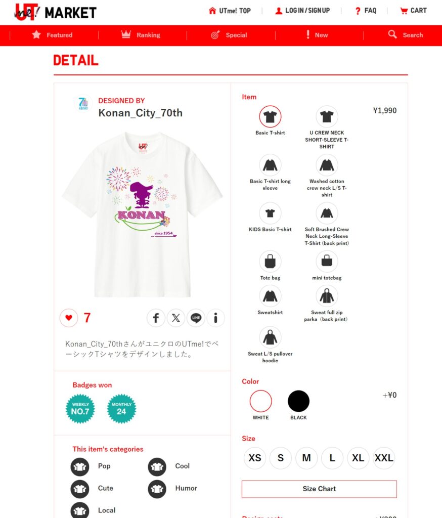 ユニクロのUTme!マーケットで、販売。