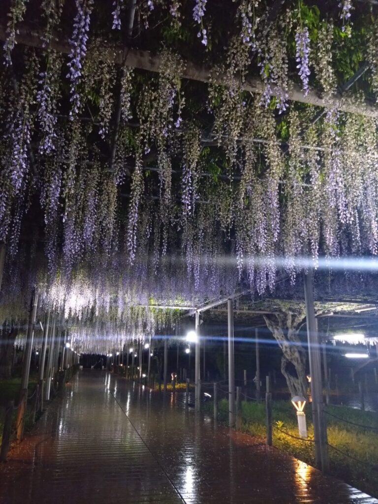 藤まつり中は、ライトアップもされ幻想的な風景を楽しむことができます。