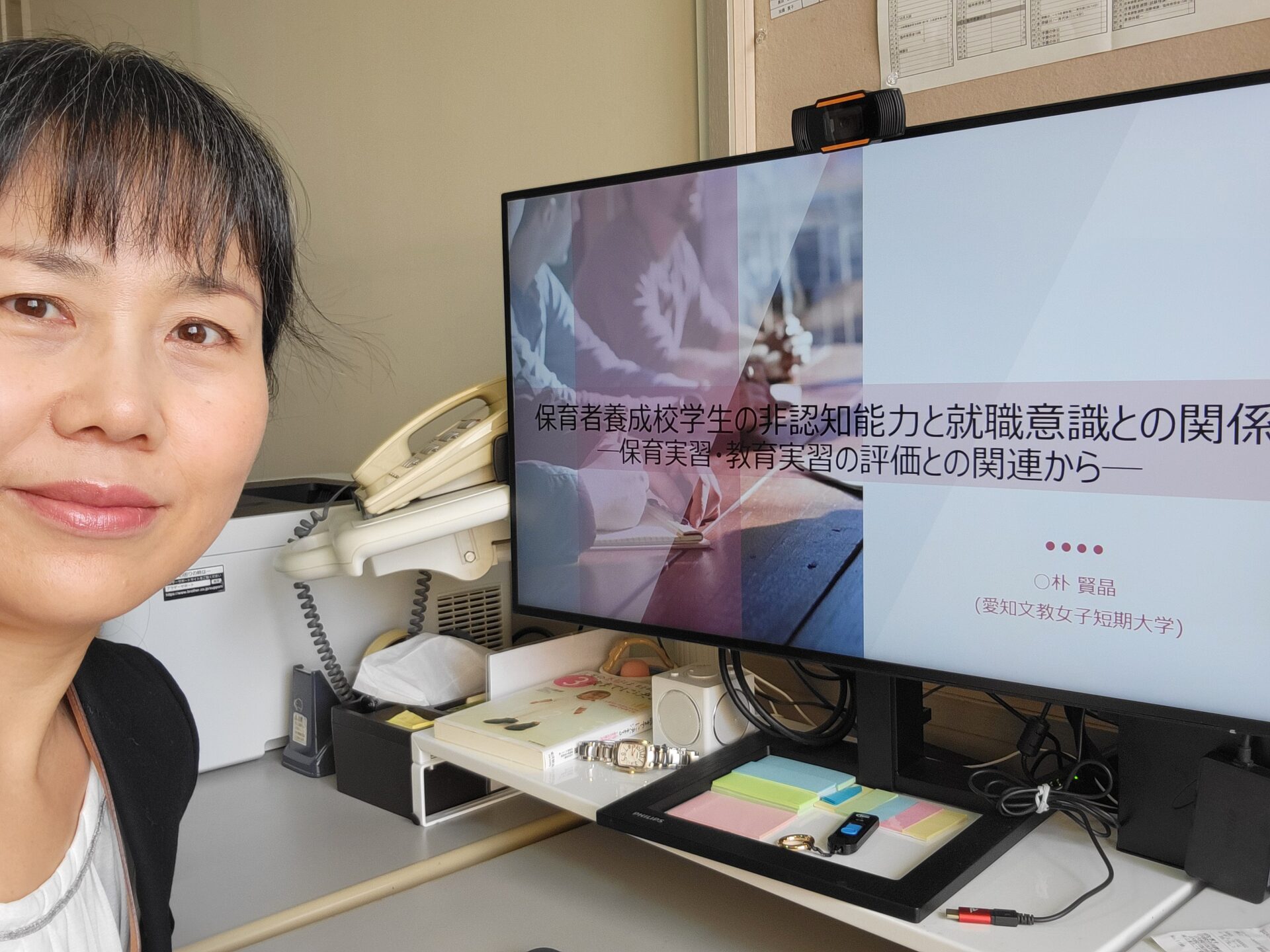 朴先生は、「保育者養成校学生の非認知能力と就職意識との関係」について研究をしており、保育者を目指す学生の非認知能力を測定し、どのような非認知能力を育成することが保育実習や教育実習の評価につながるのか、そしてどのような就職意識につながるのか探索的に検討し、情報分析力や言語処理能力、対課題基礎力が保育実習を高める非認知能力であることが明らかにしました。先日行われた保育学会で研究発表を行いました。