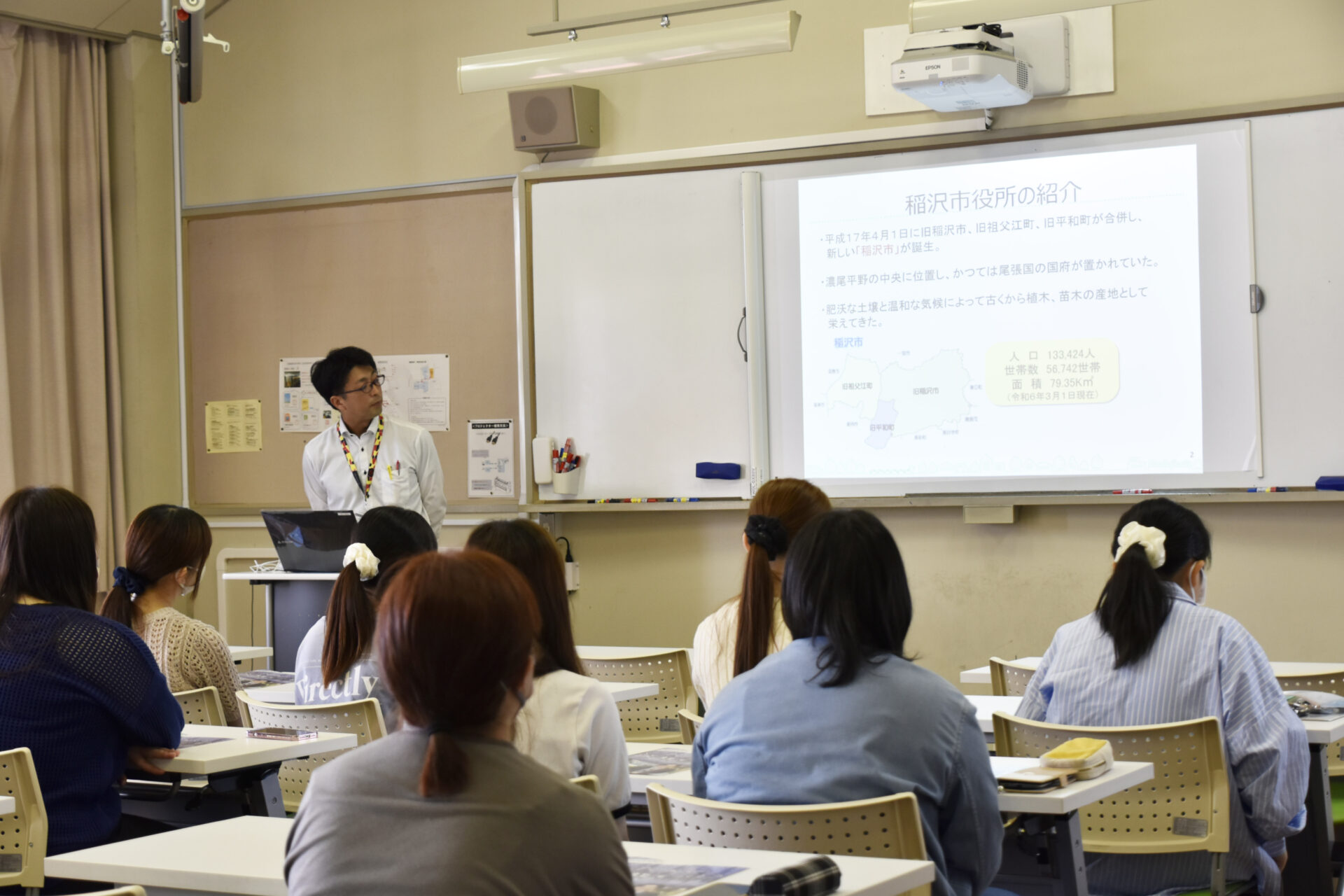 キャリアチャレンジの授業では、「公務員の魅力」というテーマで、市役所職員から仕事内容や働き方など、現場の声を担当の方から直接伺いました。