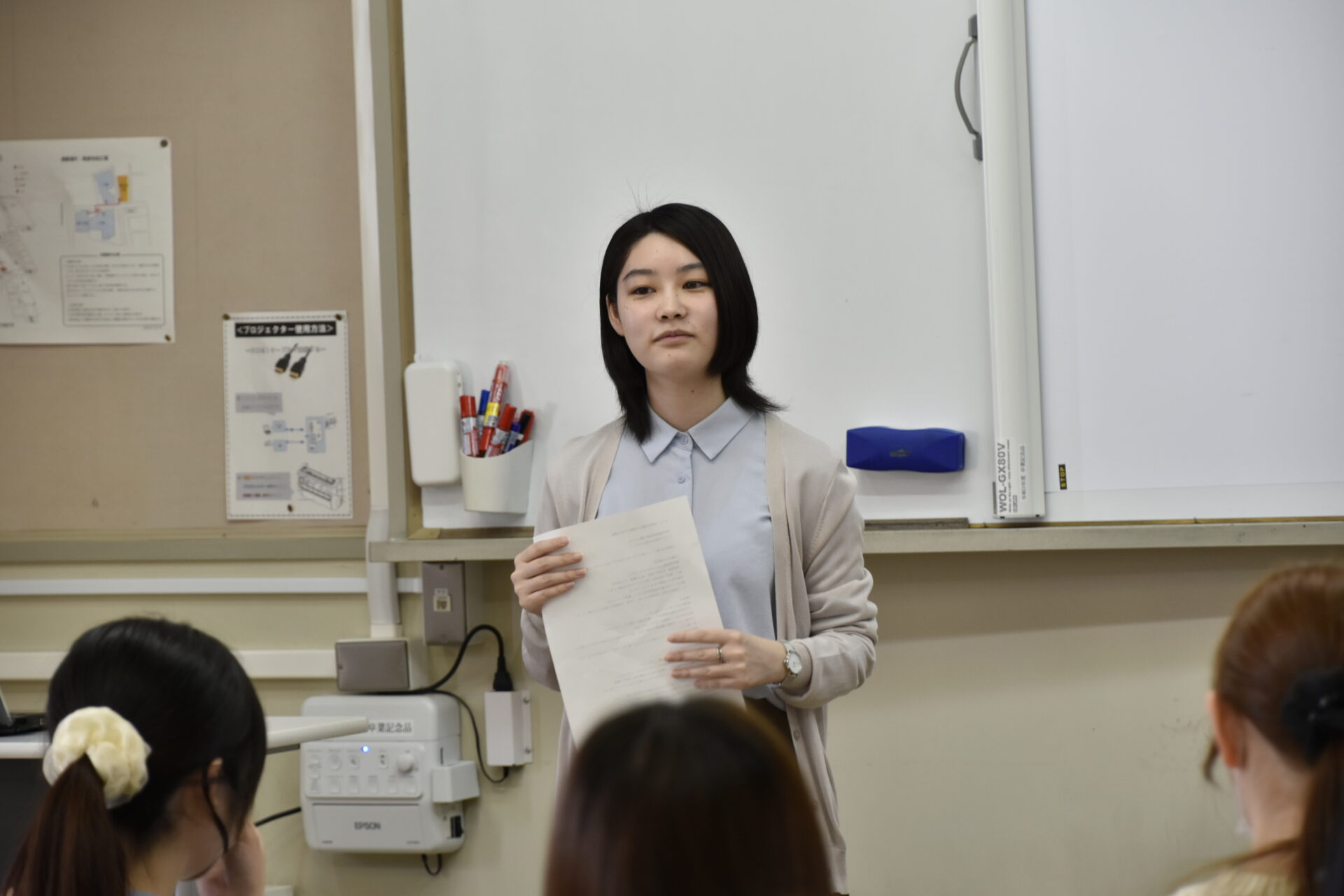 最後は、2年前に生活文化専攻を卒業し、常滑市役所で働いている卒業生から、公務員ならではの魅力や大変なことについて、学生に近い視点でお話してくれました。