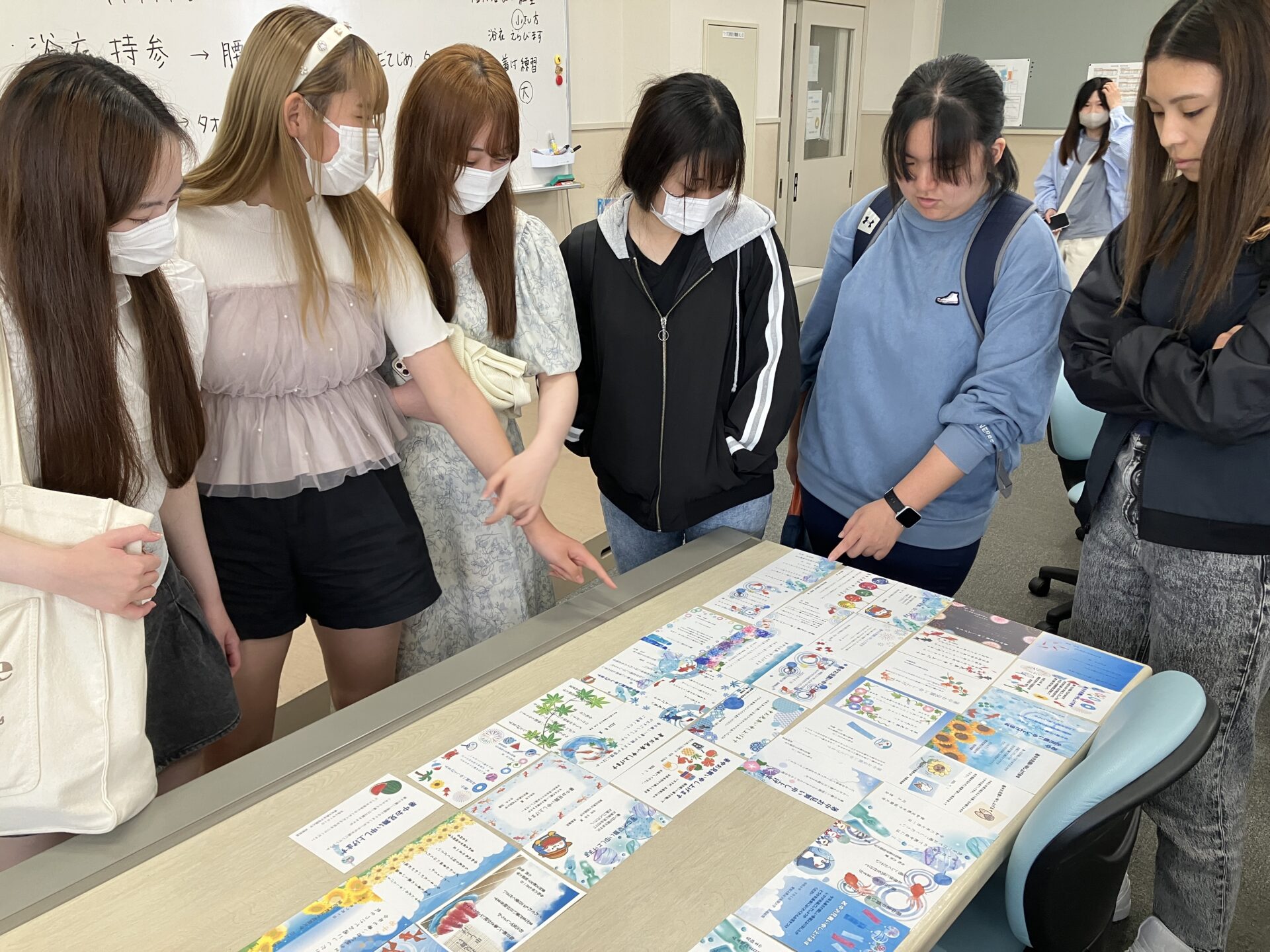 お届けする暑中見舞いのはがきは「ICT教育演習Ⅰ」で作成。暑い時期になかなか会えない方やお世話になった方の健康を気遣い健やかに過ごして欲しいとの願いを届ける「暑中お見舞いカード」。言葉を選び、イラストを添えて、個性豊かなカードがたくさんできあがりました。