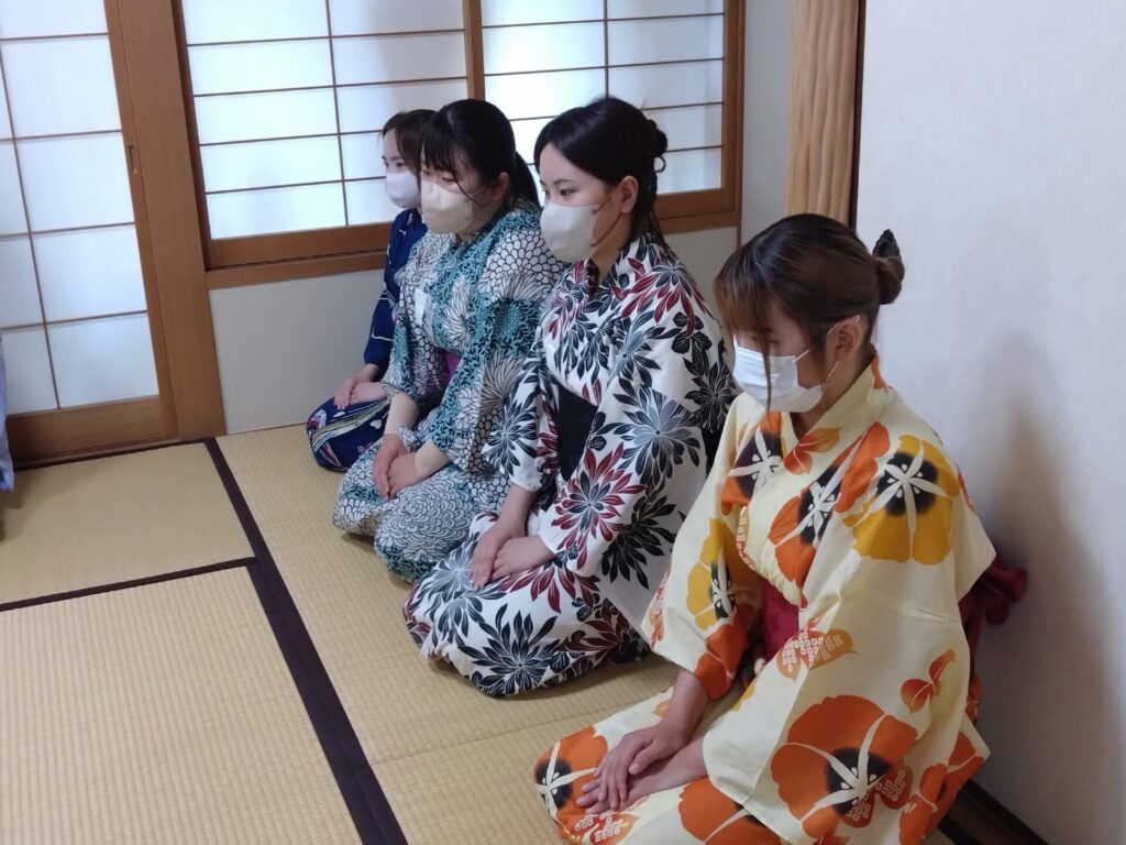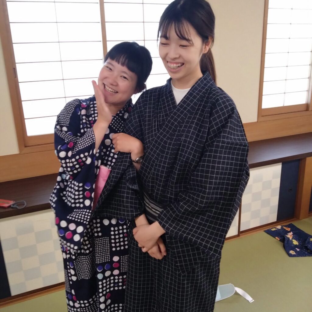 浴衣は着付けも比較的簡単で、初心者でも安心して日本の伝統文化を楽しむことができます。最初は全く着ることができなかった学生たちも5分くらいできれいに着られるようになりました。