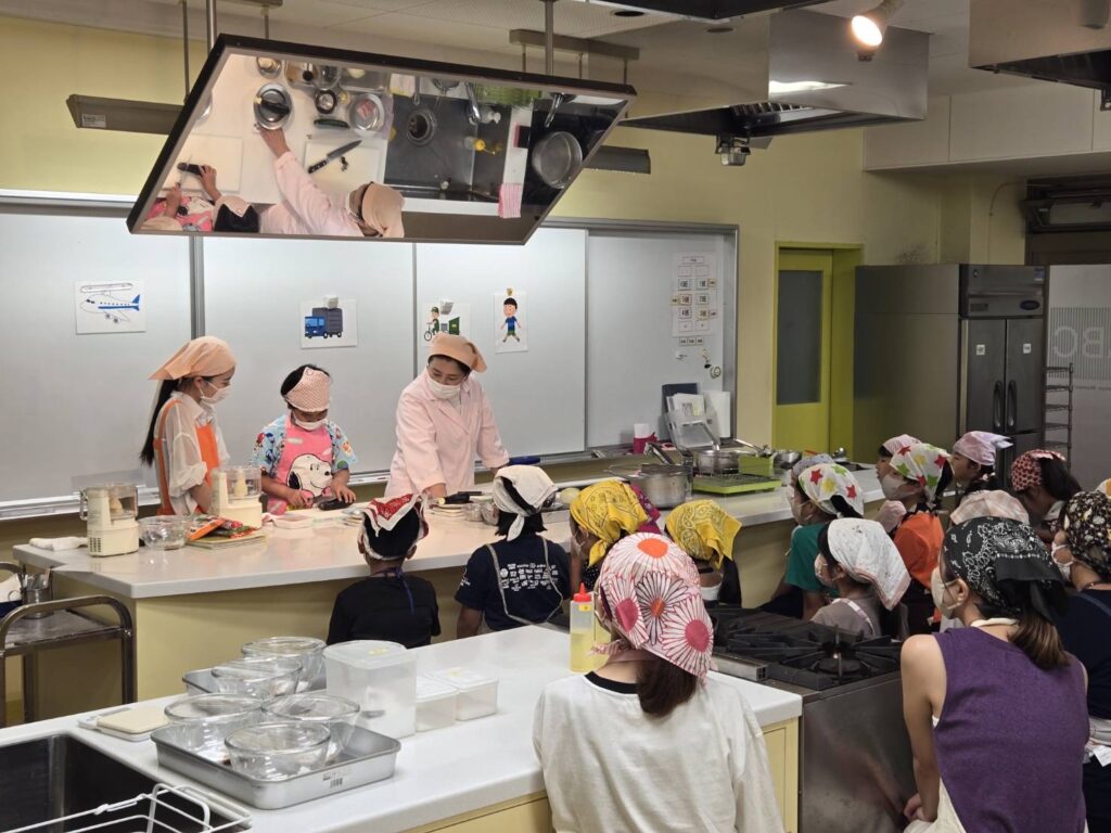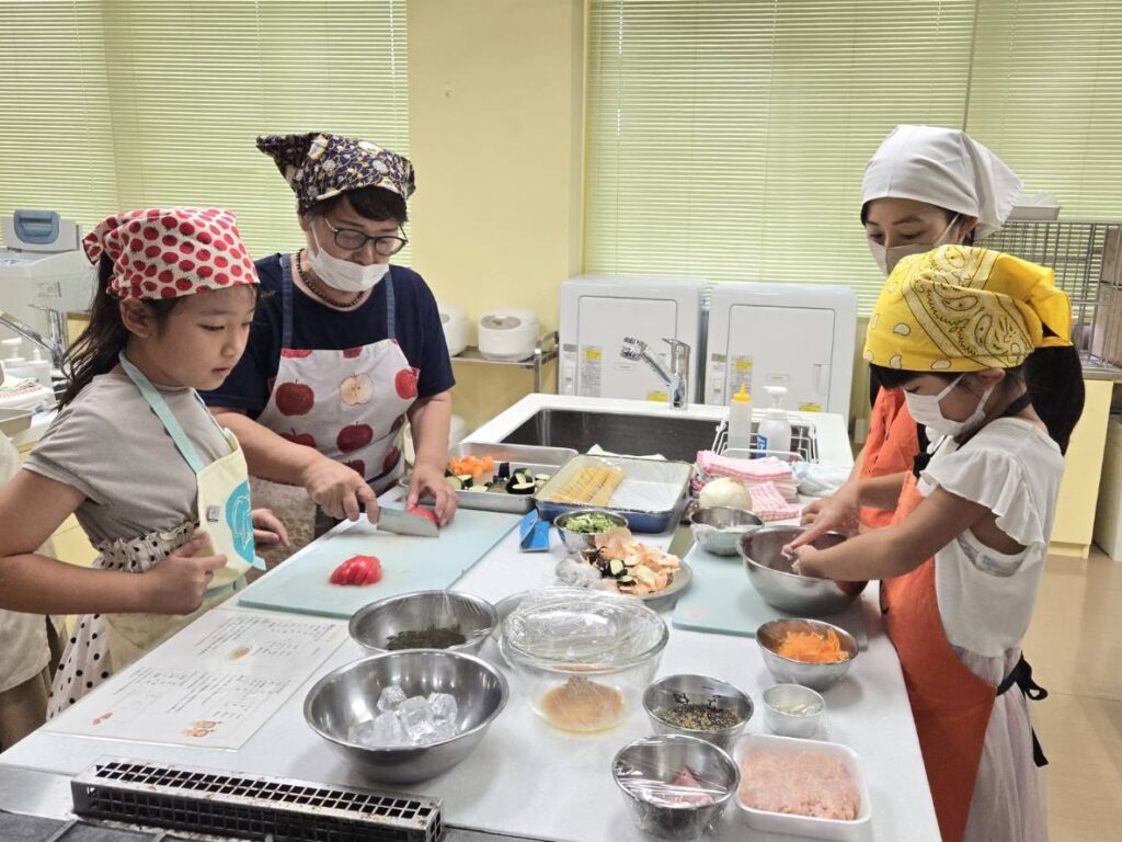 稲沢市資源対策課と連携して、生ごみをなるべく発生させない調理方法を学ぶ「親子でエコ料理教室」が行われました。稲沢市の市の組成調査によると、ごみの中で最も多いのは可燃ごみ、その中でも生ごみが40%以上を占めています。生ごみにはまだ食べられる食品がたくさん含まれており、日本全国では472万トンにもなると言われています。食べられる食品を捨ててしまうと、その処理に多額の税金が使われます。食品ロスを減らすために、食材は使い切る、食べ残さない等に気を付けることが大切です。