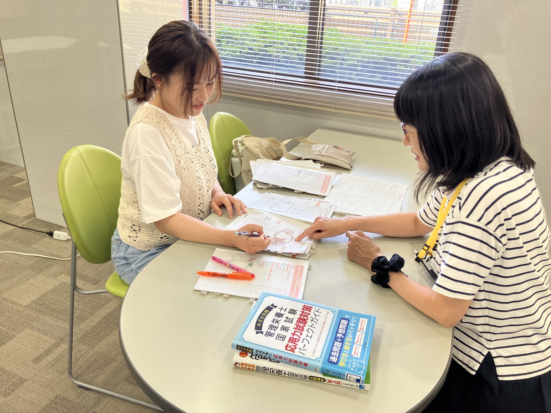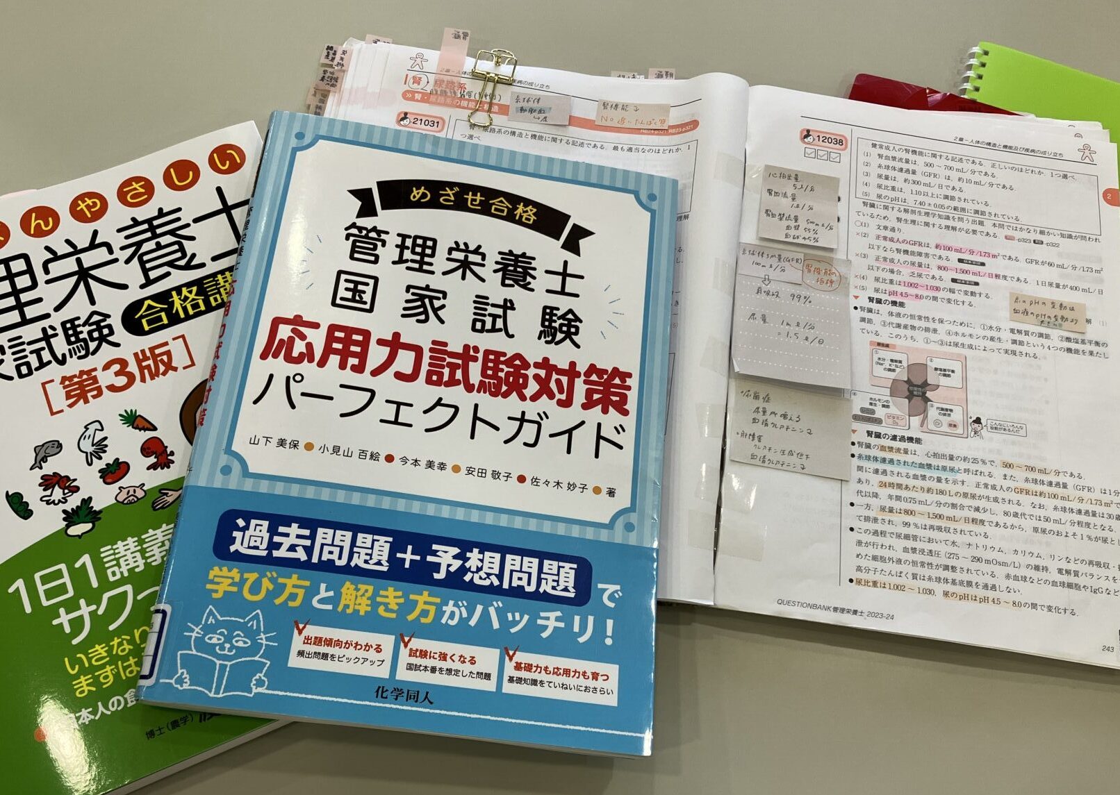前回は東京都内の保育園に就職した卒業生が相談に来ました。そして、今日は高齢者福祉施設で栄養士をしている育休中の卒業生が受講に来てくれました。付箋がびっしりついた参考書は、勉強が進んでいる証拠!頑張って合格を勝ち取りましょう!応援しています!