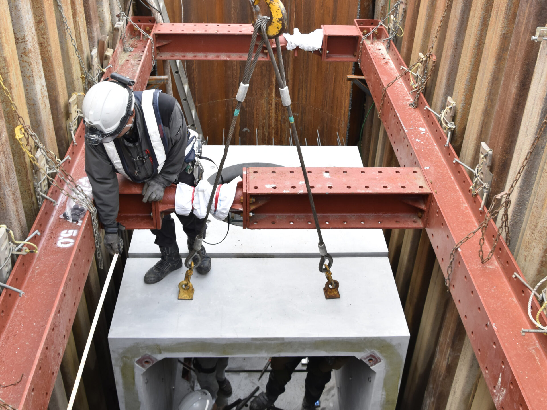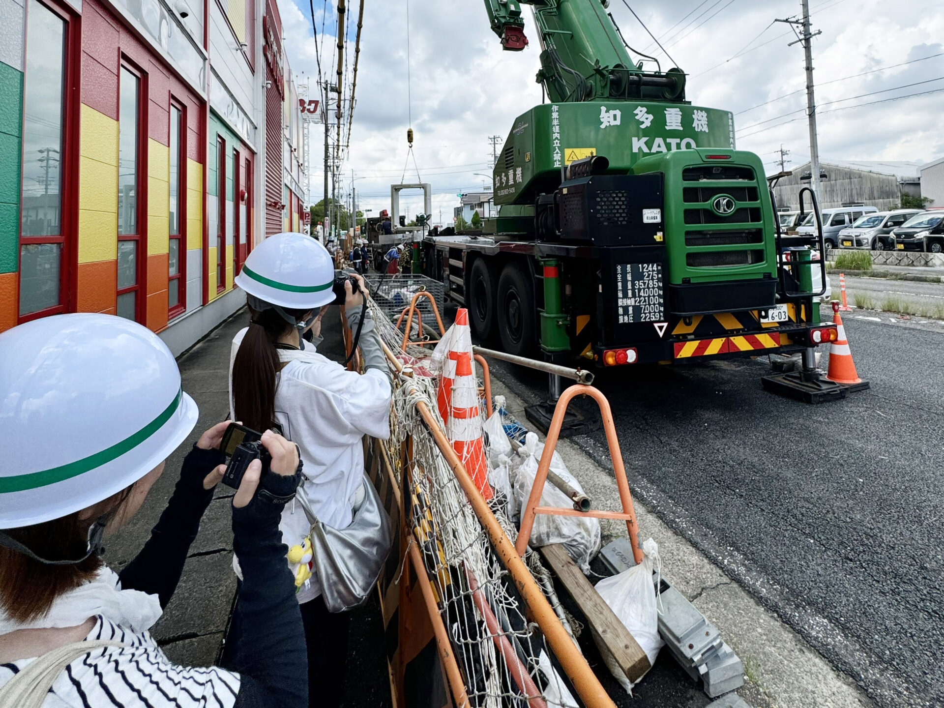 今回の現場は、大型のクレーン車からマンホールの中のメンテナンス用空間を作るための作業で、大型のクレーンを用いて、コンクリートの枠を地中に配置しつなげていくのですが、わずかなズレもないように精密に配置できるよう、クレーン車と現場の息の合った作業が圧巻でした。普段マンホールの中をのぞく機会がないので、内部にメンテナンス用の横穴空間があることも知ることができました。社会インフラという、普段あまり意識しない、生活には重要な設備の裏側を見学できたのは、とても貴重な体験で楽しんで撮影取材を行いました。