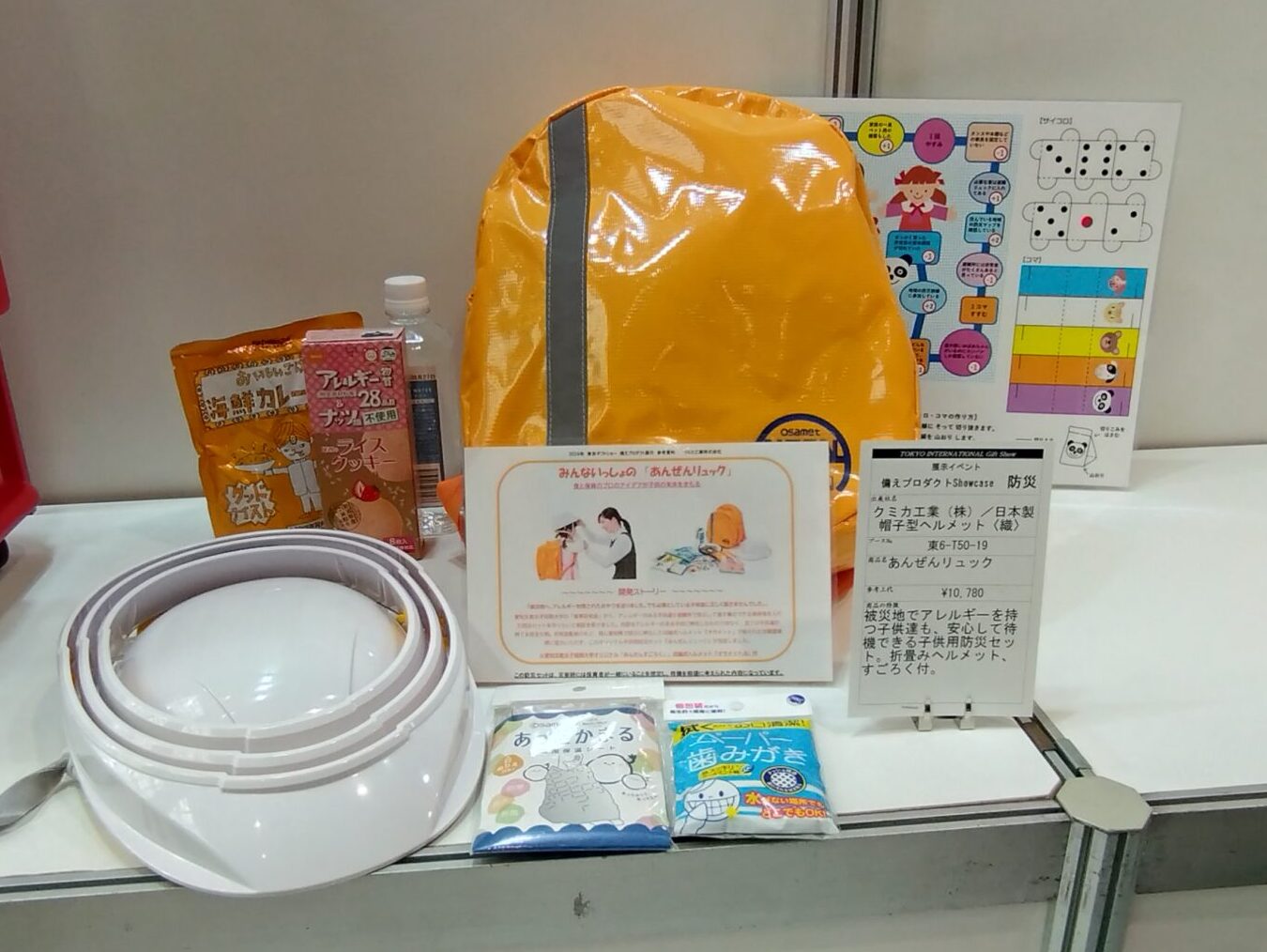 今回の展示は、クミカ工業株式会社様ご協力のもと実現。多くの皆様に「みんないっしょのあんぜんリュック」の重要性を知っていただき、災害時にもこどもたちの安心安全な環境づくりを目指して活動を続けていきます。