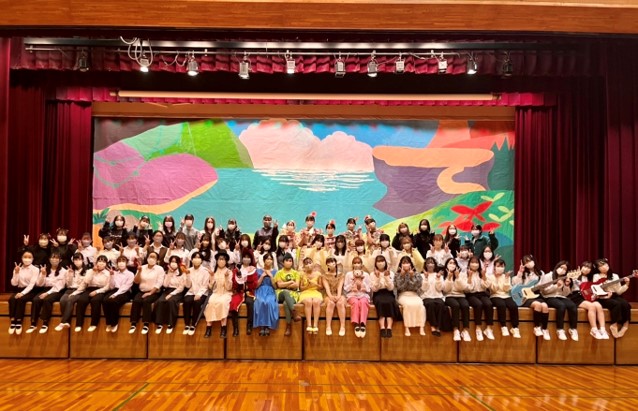 『総合表現』の授業では、全員で一つの作品を作り上げるため、歌やダンス、合奏、セリフなど舞台に集約された技術を学び、協調性、自主性、創造力、実行力を身に付け、人間力と保育者としての大切なスキルを学びます。