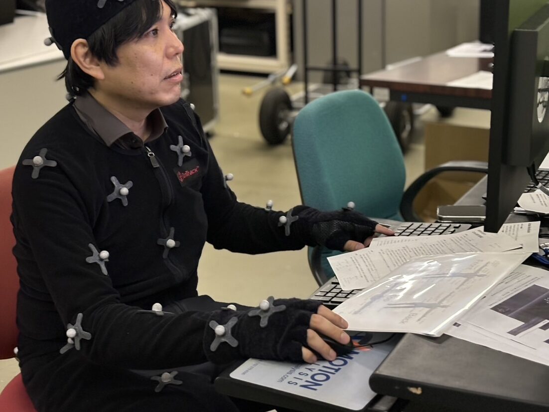 現在、砂田先生が力を入れているのは、「モーションキャプチャ」という技術を使った研究です。モーションキャプチャとは、人の動きをカメラやセンサーで記録し、その動きをデジタルデータとして再現する技術です。例えば、人間の動きを撮影して、そのデータを解析し、どの動きが一番効率的なのかを調べることができます。砂田先生は、国の研究費「科研費」を使って、熟練者の動きをわかりやすくする教材システムの開発にも取り組んでいるとか。