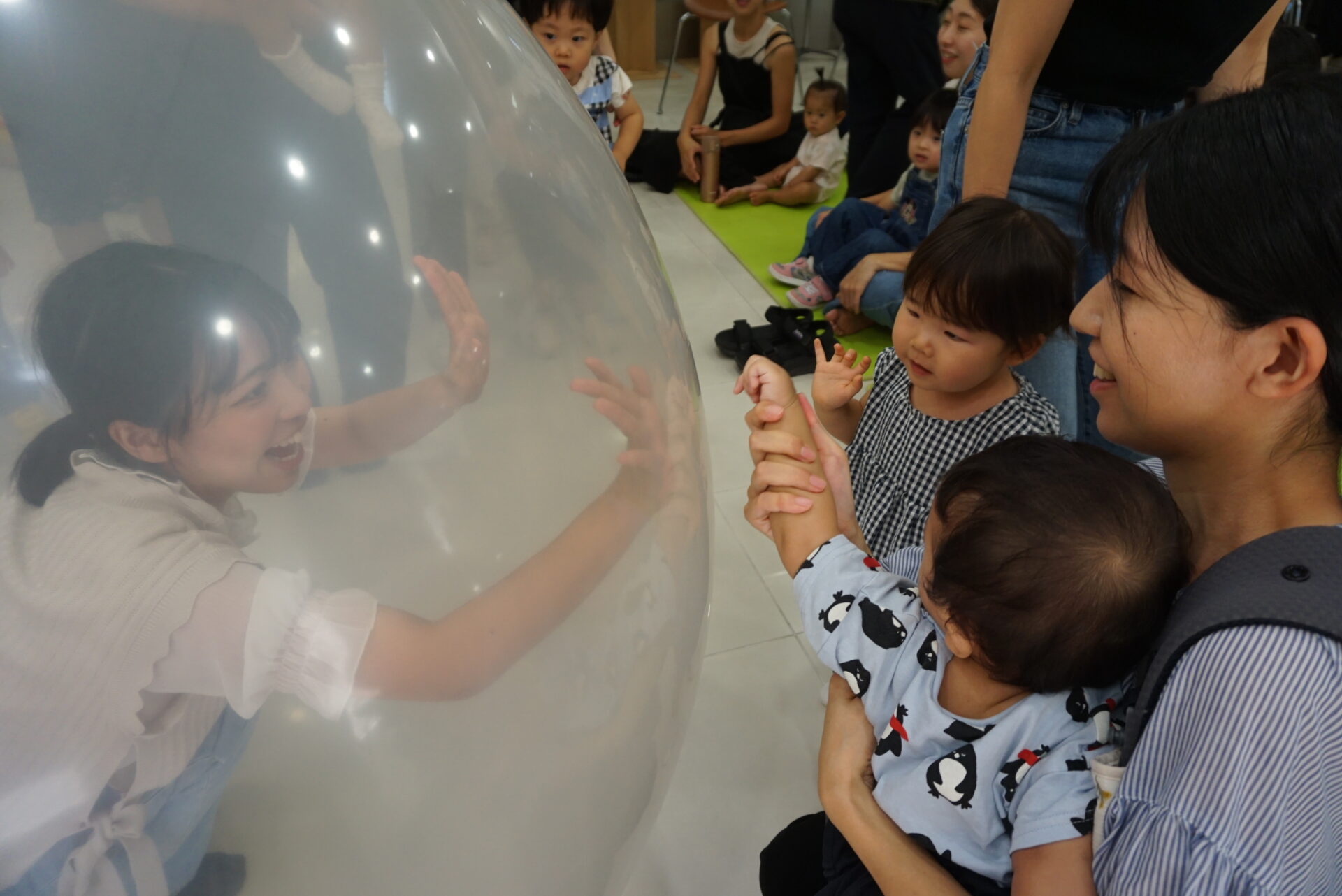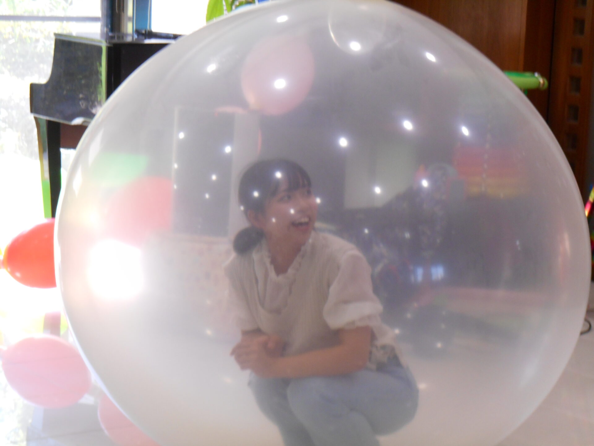 特に盛り上がったのは、学生が風船に入って子どもたちと触れ合う場面。子どもたちの目はキラキラと輝き、笑顔が溢れていました。