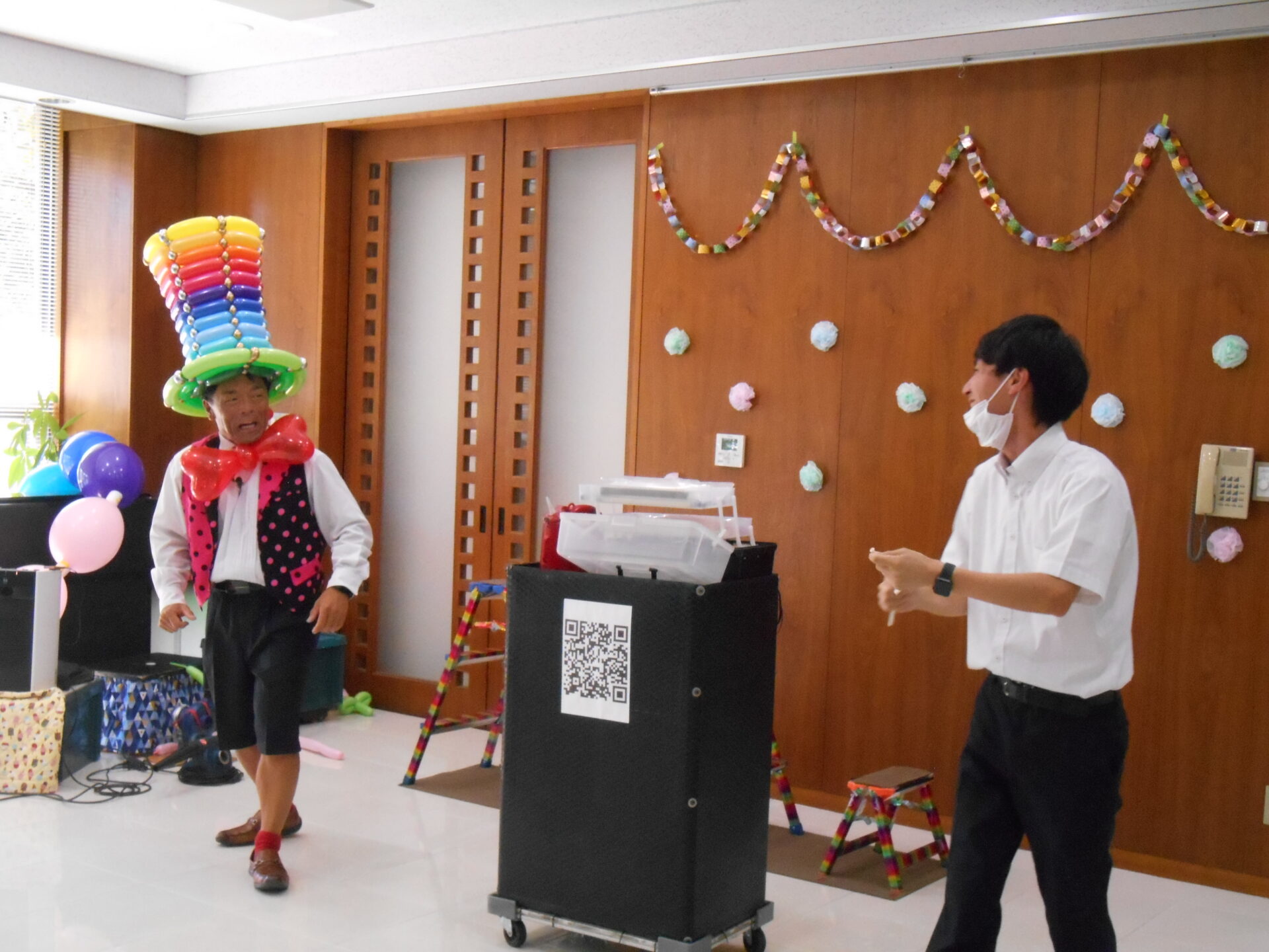 風船太郎さんは、色とりどりの風船を使って、動物やキャラクターを次々と作り上げ、観客を引き込む魅力的な内容に驚きと笑い声と歓声に包まれました。学生たちや教職員も参加し、和やかな雰囲気の中で交流が生まれました。
