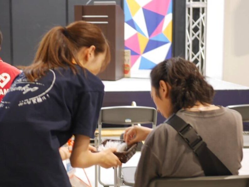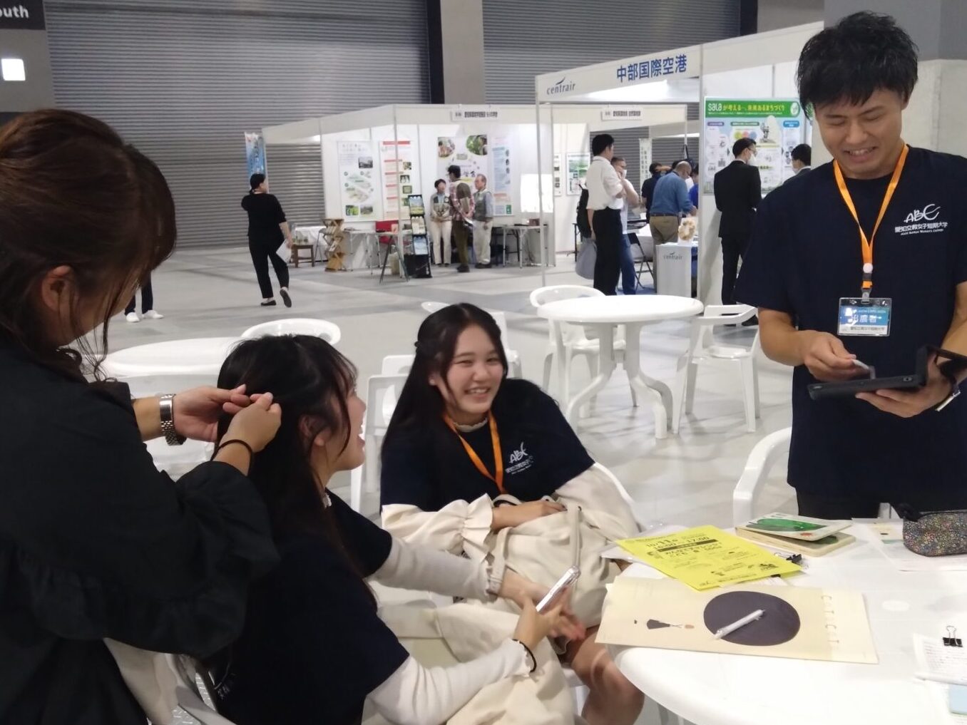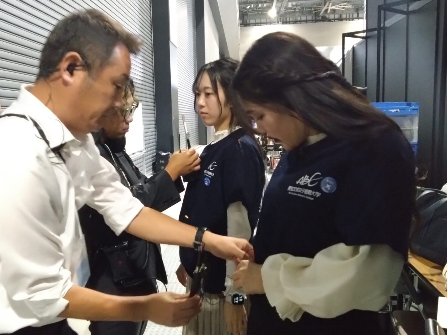 イベント当日、事前打ち合わせでは岡田先生が学生たちのヘアアレンジを担当し、みんなかわいくスタンバイ。