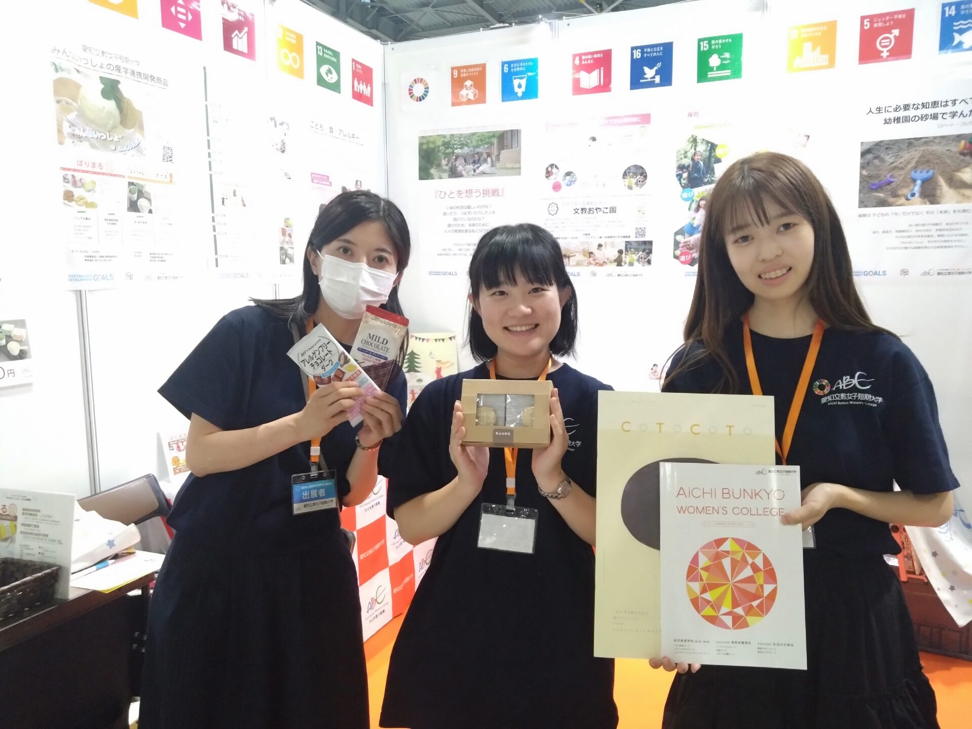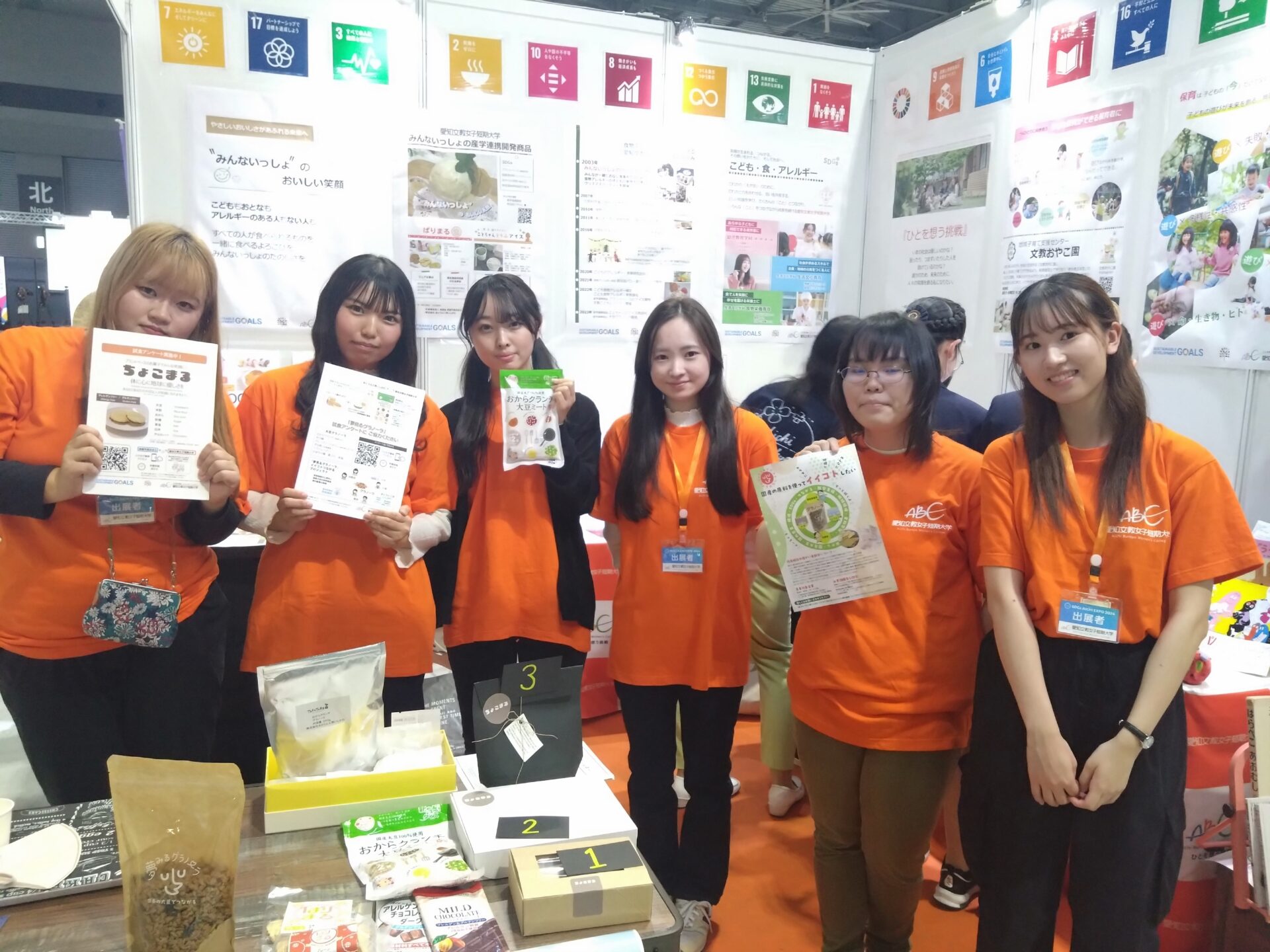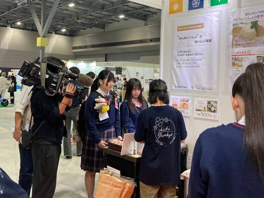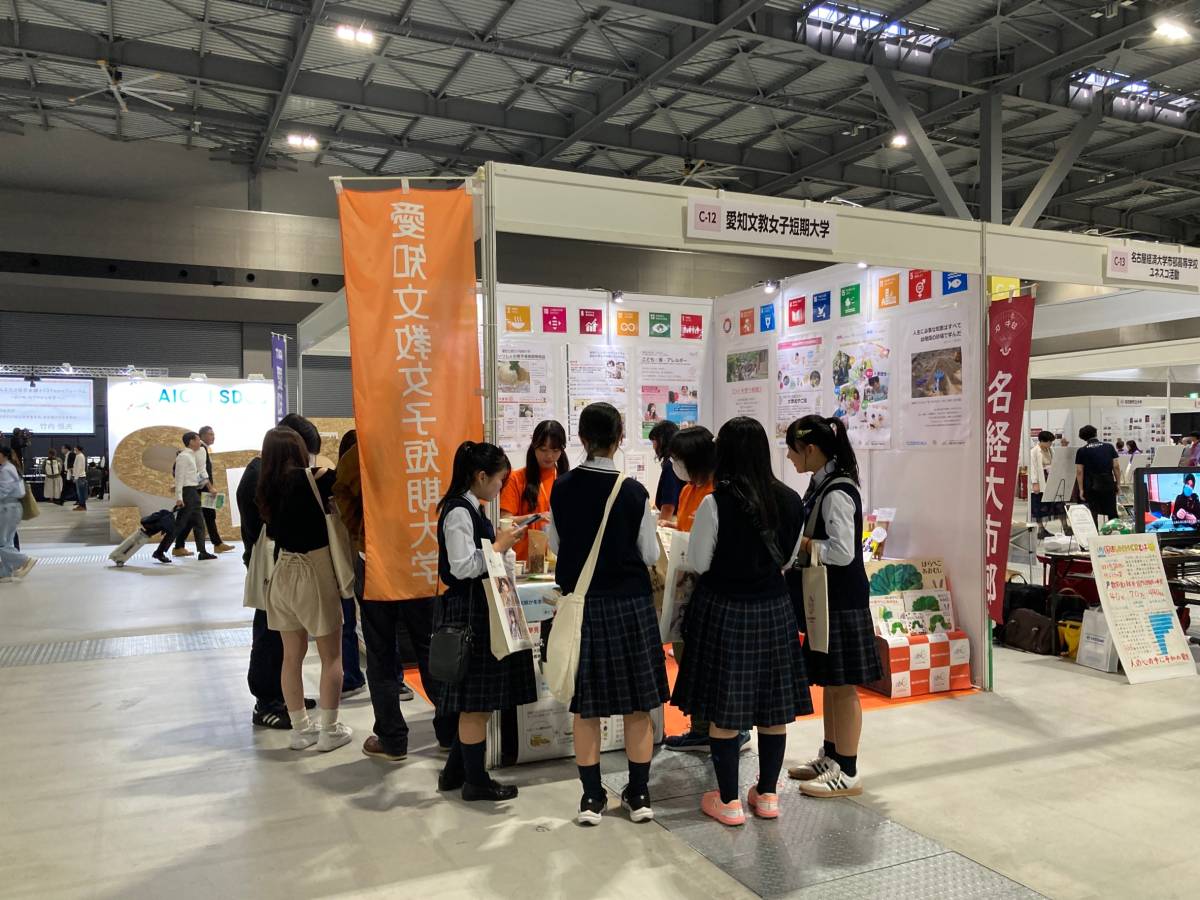文教女子のブースでは、「こども・食・アレルギー」をテーマに、食物アレルギー教育の取り組みや、産学連携開発商品紹介と販売。今年は、幼児教育学科の先生方とも協力して、日常の保育活動を通じてSDGsを実践するアイデアや工夫を展示しました。教育現場や家庭で簡単に取り組める方法が紹介され、SDGsの実現に向けて身近な活動の重要性を改めて感じていただく機会となりました。