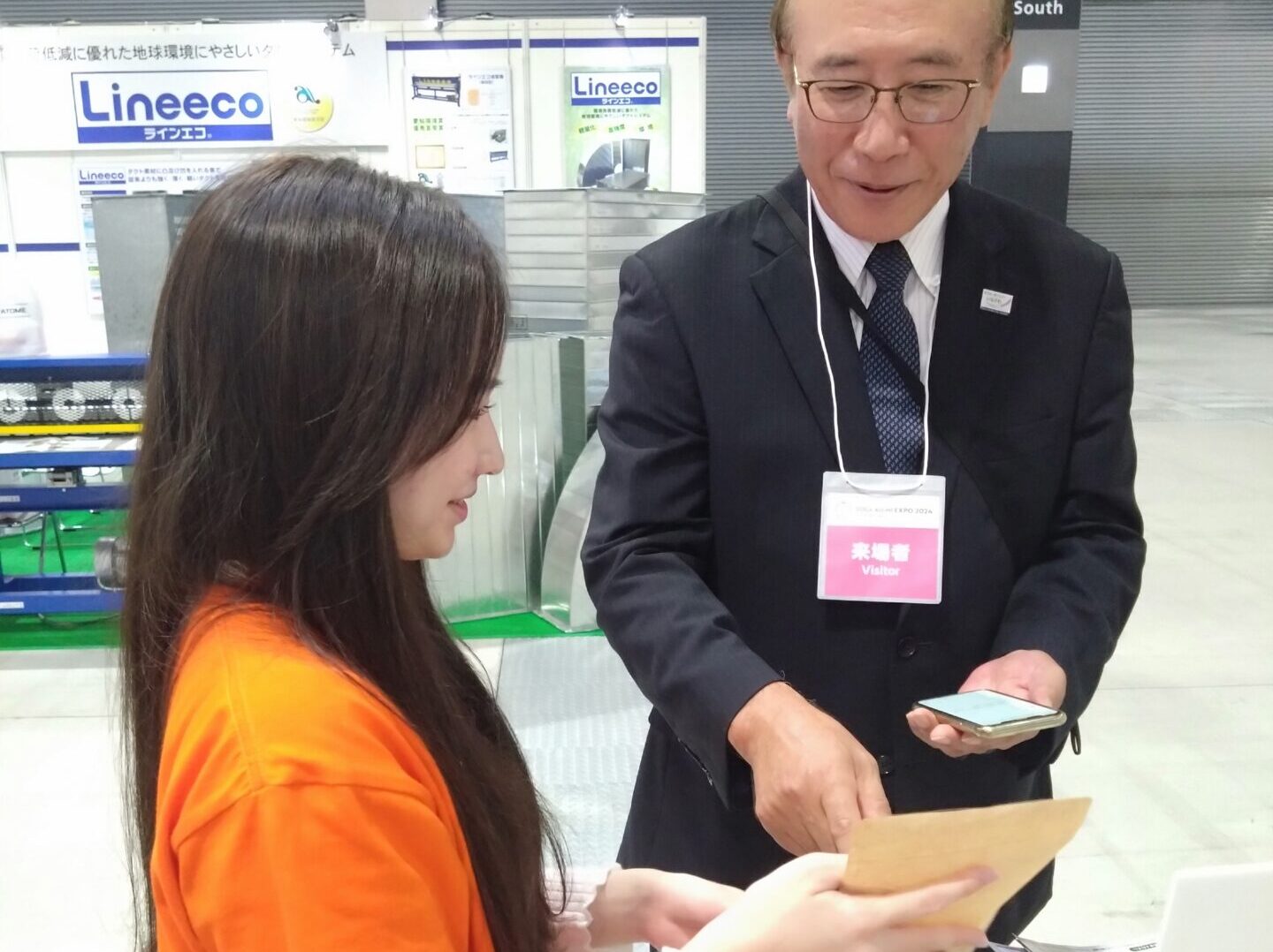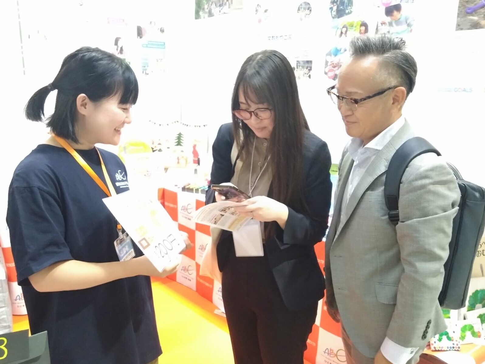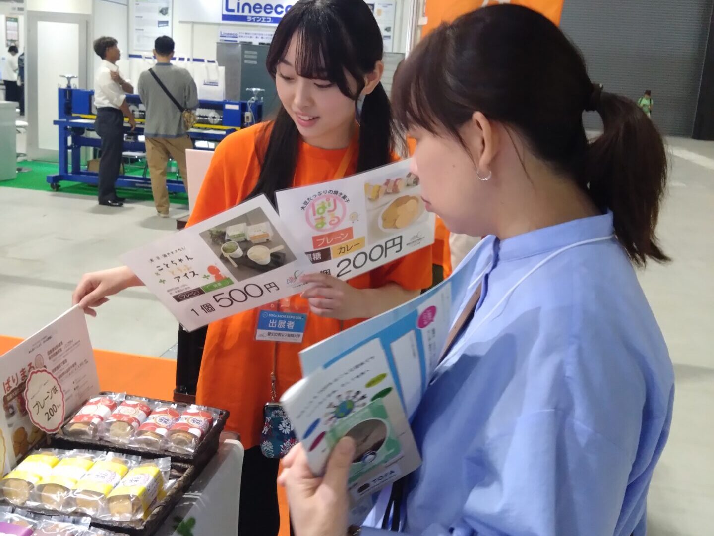 「ぱりまる」プロジェクトチームは、パッケージデザインの参考にするため、ホンダロジコムのブースでパッケージデザインや取り扱い企業について質問しました。展示会ではさまざまな企業の方々と直接話ができ、多くの情報を得られ、これからのプロジェクトにつなげることができる点が魅力の一つです。