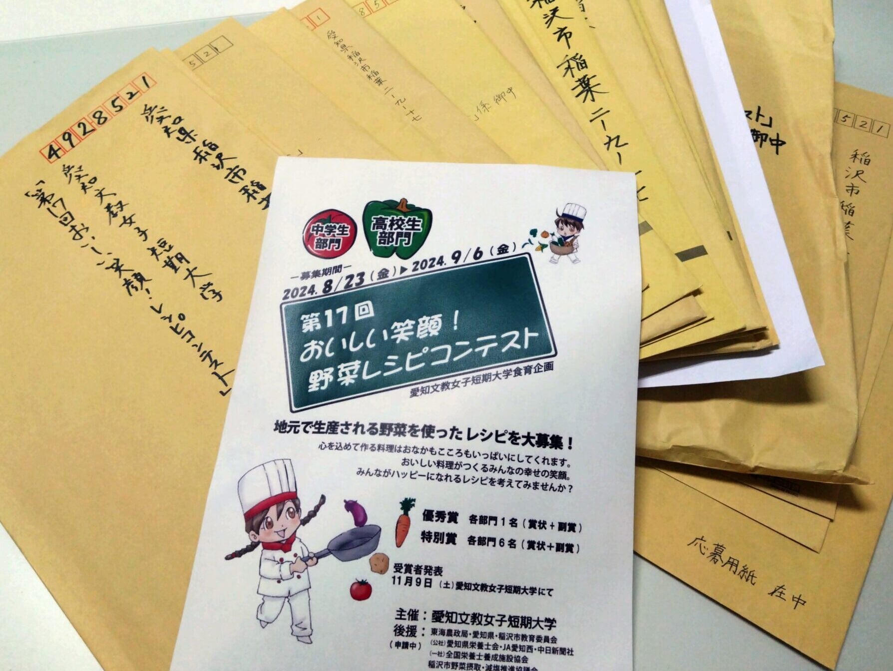 結果発表は11月中旬に郵送で行われます。応募者の皆さんのドキドキを感じながら、審査を重ねたこのコンテストが、今後も愛知の地元野菜の魅力を広げ、野菜摂取量向上を改善するきっかけとなればと願っています。