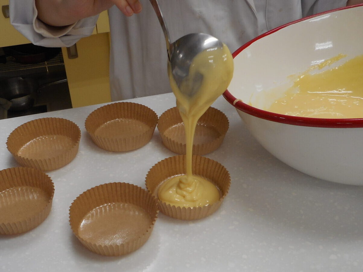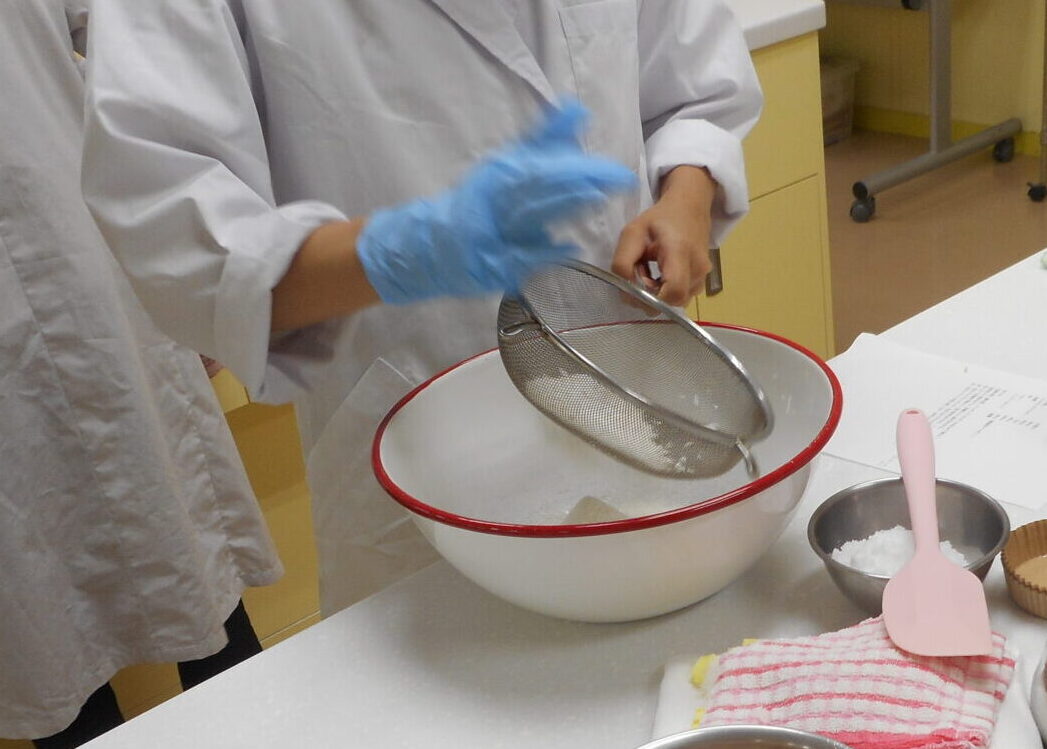 食物栄養専攻2年の私たちは、11月2日に開催される「文教音楽祭」にて200個のマドレーヌを提供します!そのために、今日は、事前に試作を行い、マドレーヌの焼き上がりを確認しました。調理学実習でも焼き菓子を作りますが、製菓製パンでは、さらに本格的なスイーツを実習します。
