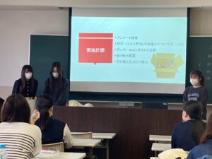 授業紹介 卒業研究 研究計画報告会 2022.05.09 愛知文教女子短期大学では短期大学では珍しいのですが、 卒業研究を1年間かけて行います。 1年間の学びと研究を卒業時にきちんと成果として世の中へ出していけるように、これから 頑張っていきます。 研究計画報告会では、まずは基礎のところで問題がないかの確認と、 今後の課題解決のための問題点を確認しました。1年間、楽しく学んでいきましょう!
