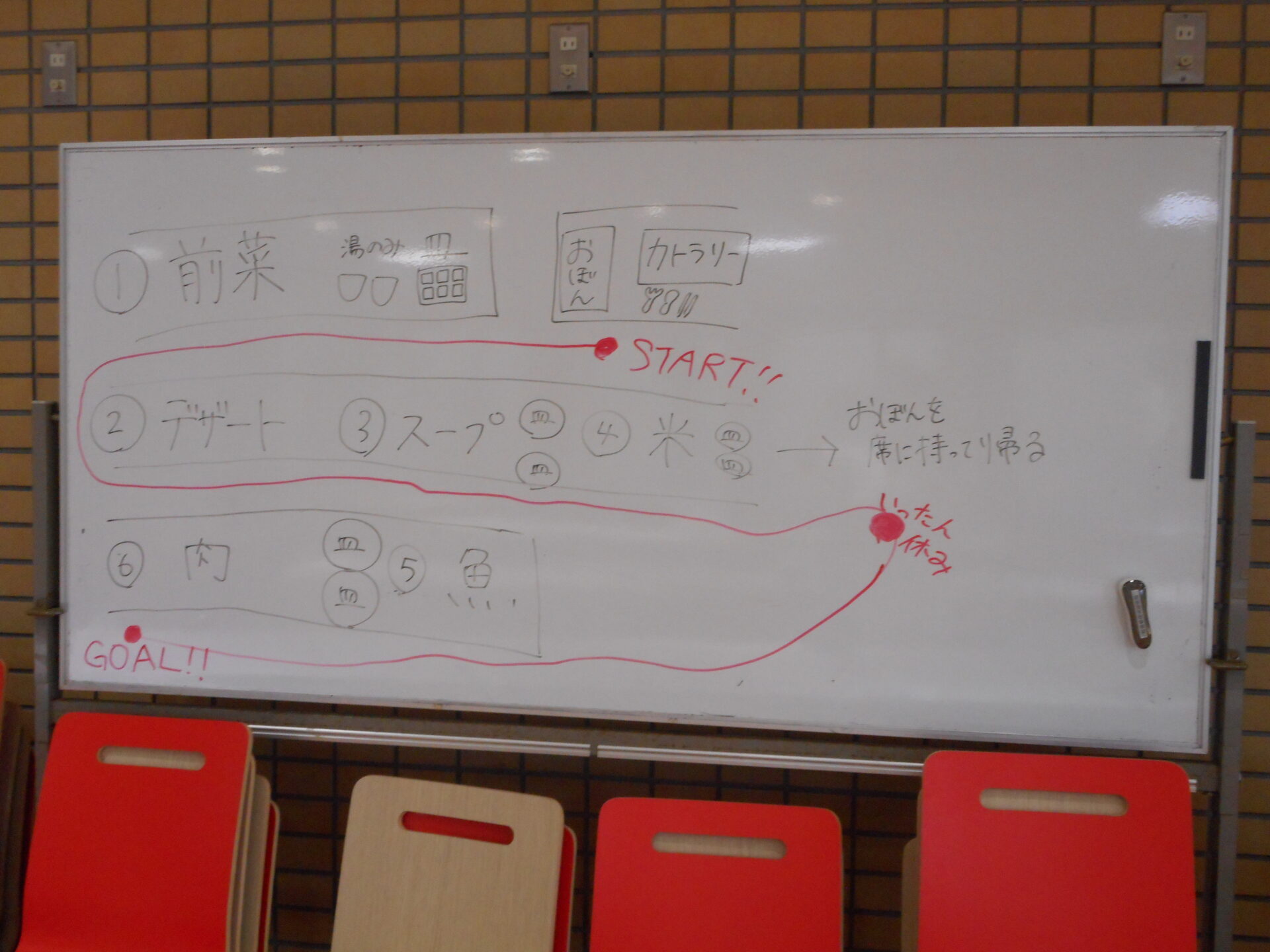 調理後は、全員で試食。料理の配置にも混雑しないような工夫をし、ビュッフェ形式で全員が試食しました。試食は和やかな雰囲気で、参加者全員が料理の感想をシェアし合い、改善点なども話し合いました。臨床栄養学実習や食物アレルギーの授業で学んだアレルギー対応の知識や、給食管理実習で学んだ大量調理や提供の方法を活かして、安全にパーティーを成功させるためにはどうすれば良いか話し合います。料理の配置方法やフルサービスの進行をスムーズに行うため、学生の動線や役割分担を考慮し、全員で協力して効率的なサービスができるように計画を立てていきます。