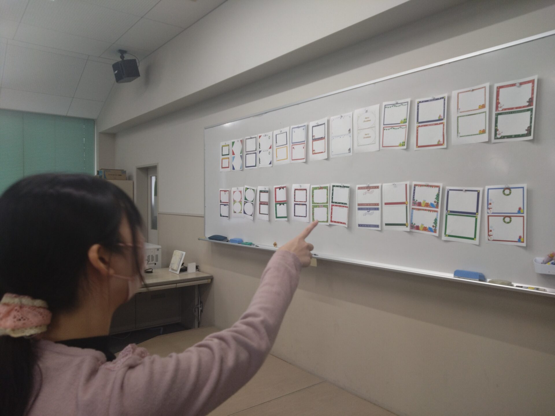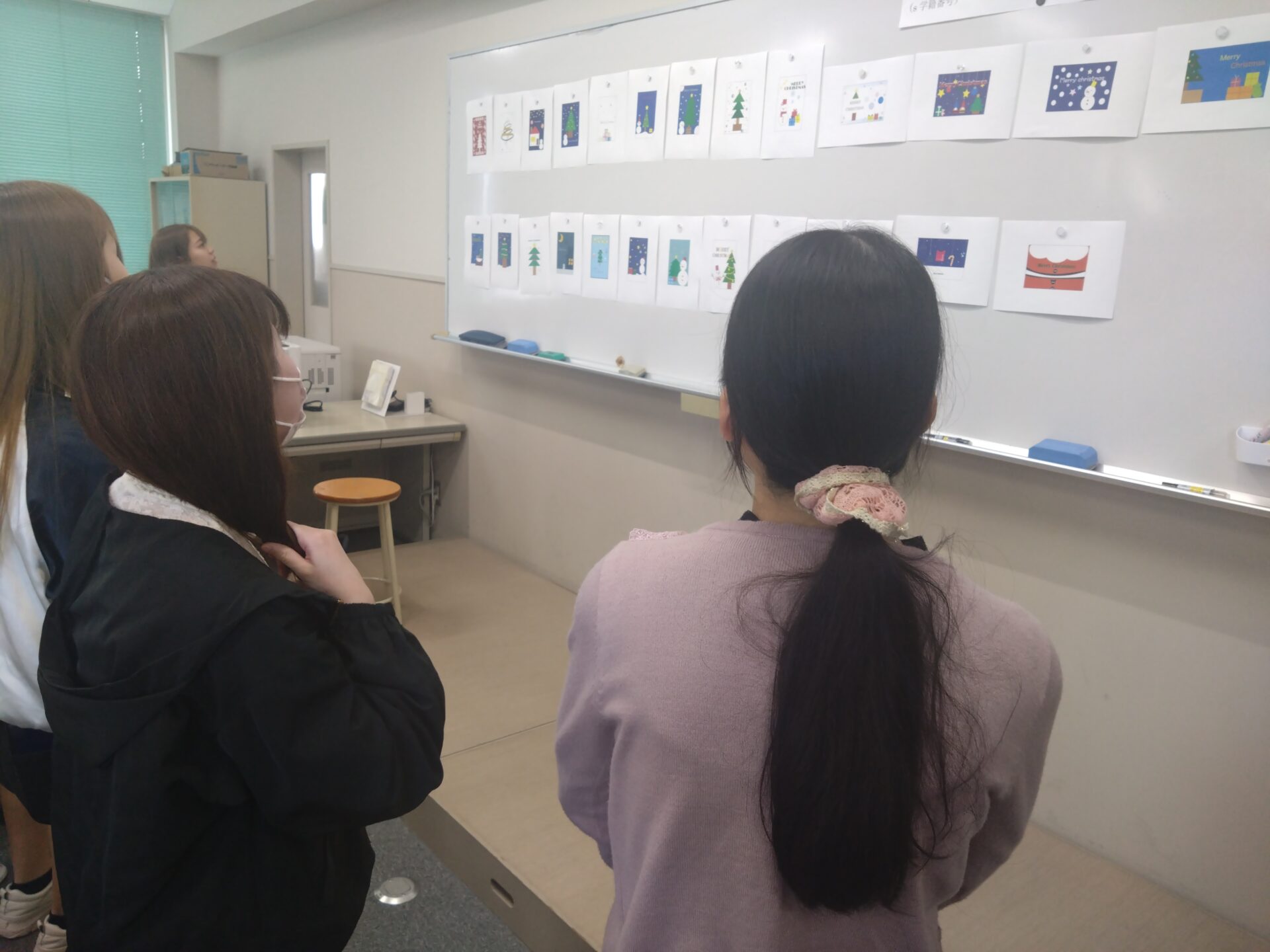 ポストカードは、クリスマスツリーにオーナメントのように飾りつけ、参加者へのプレゼントとして配られるため、学生たちは、「自分だったらどんなデザインが嬉しいか?」などを想像し、カラフルで楽しいデザインがたくさんできあがりました。