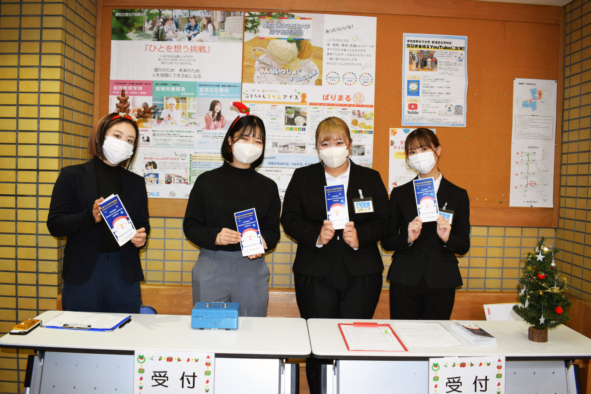 「みんないっしょのクリスマス2024」パーティ当日の生活文化専攻学生たちの活躍を紹介します。生活文化専攻1年生の2人が受付とタブレットの配信を担当しました。