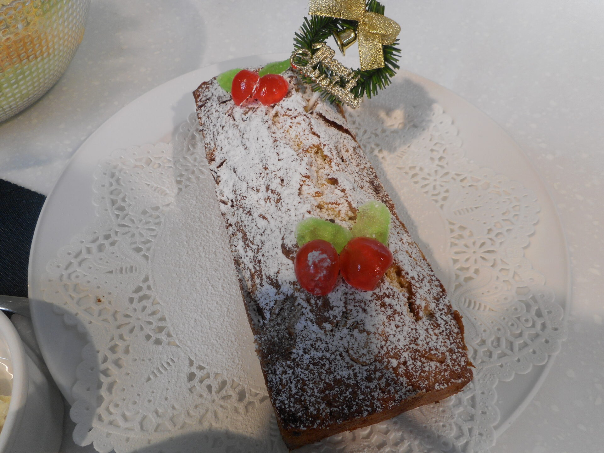 盛付けに少し手を加えて日常食をクリスマスディナーにアレンジします。パウンドケーキは、アンゼリカとドレンチェリーを柊に見た立てクリスマスらしい仕上がりにしました。いちごのショートケーキやシュトーレンでなくとも、盛り付けの工夫で、クリスマスのテーブルを彩ることができます。