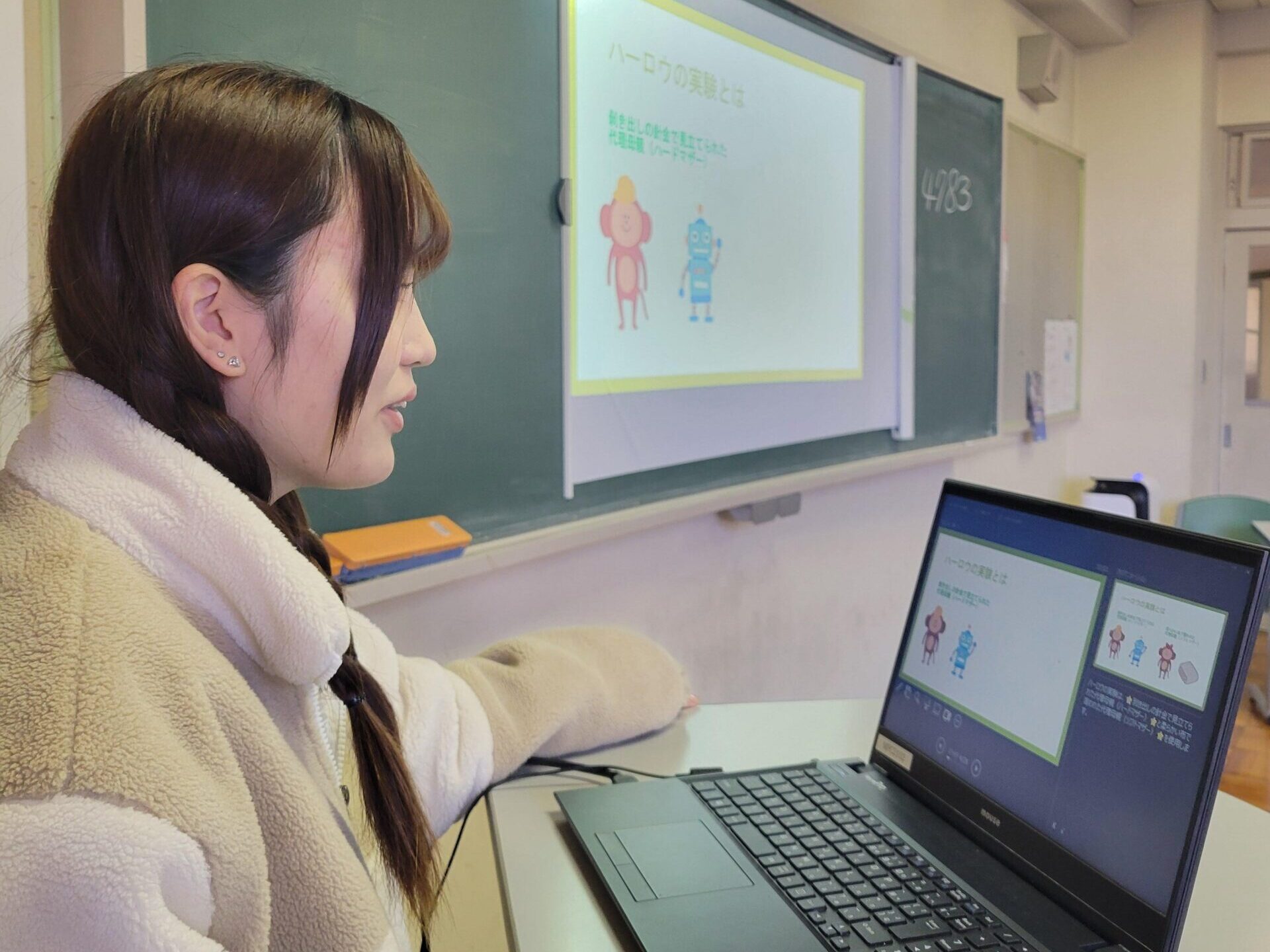 本日の授業のテーマは「なぜ子どもはうそをつくのか?」、「遊びの発達」、「移行対象」、「困った行動について」など、幼児期前期(1~3歳までの時期)について、4名の学生がそれぞれのテーマについて発表し、その後、クラス全員で質疑応答を行いました。