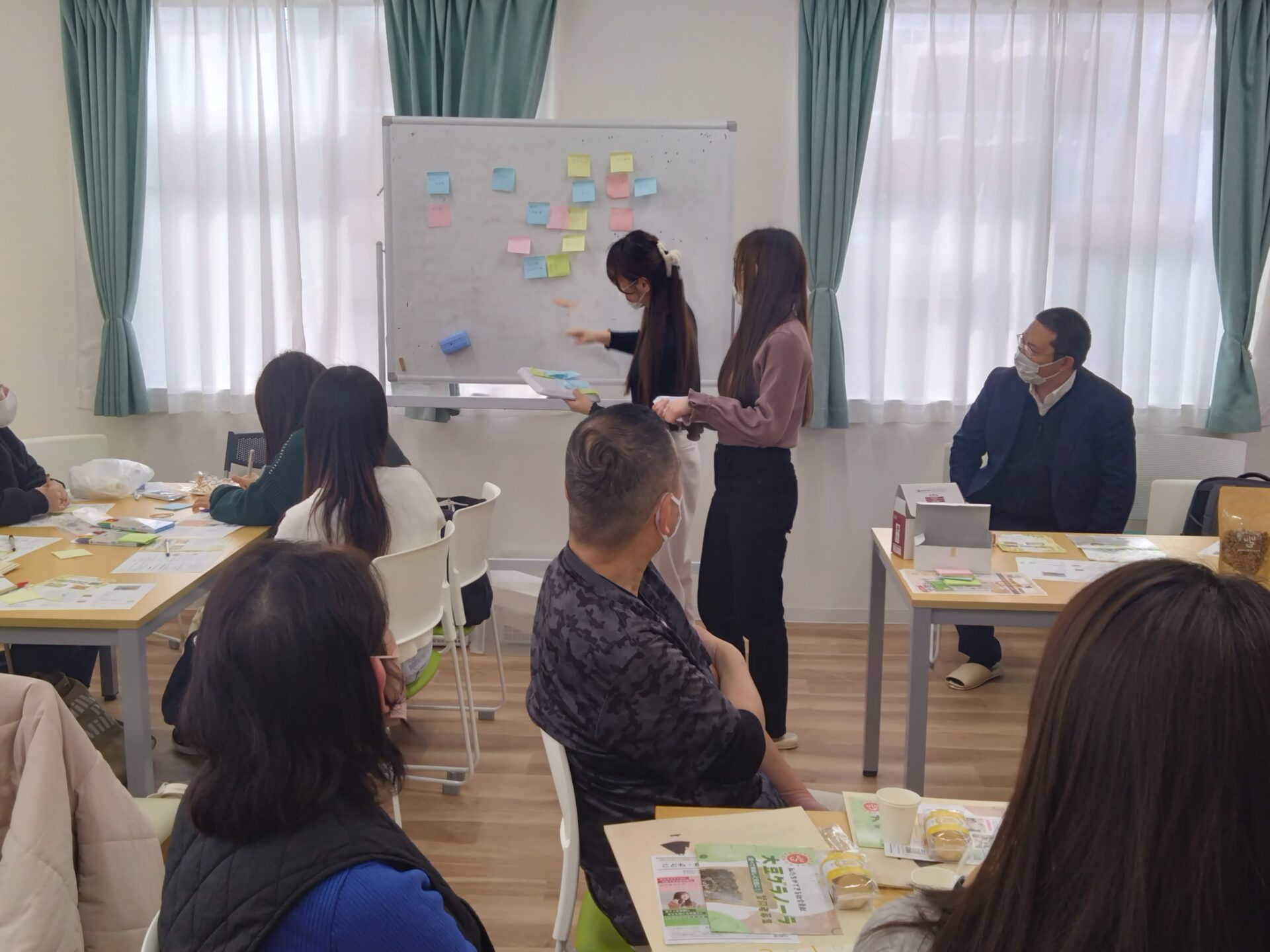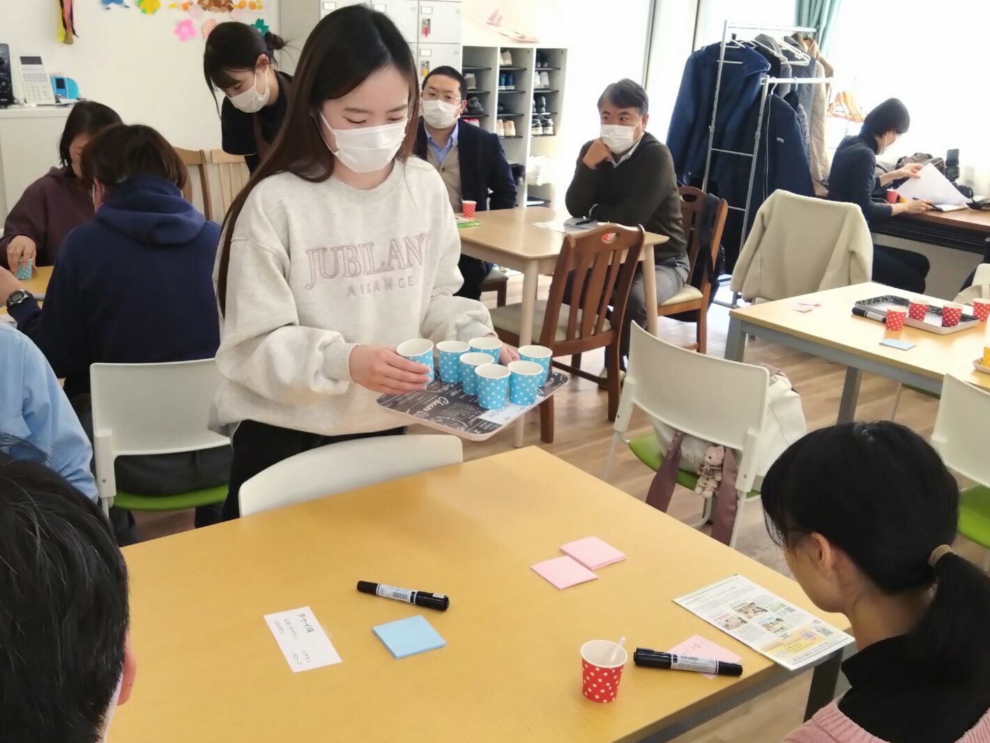 わりぼし大根や稲沢次郎ほうれん草などの、稲沢特産の野菜、バナナやいちごなどのフルーツ、ジャコやサーモンなどの魚・・・味についても、キャラメル、抹茶、チョコ、コーヒー、チャイ、みたらし、カレー・・・・付箋を使って自分の意見を提案し、どんな発言をしてもみんなが受け入れるといった雰囲気で実施できたこともあり、さまざまなアイデアが生まれました。