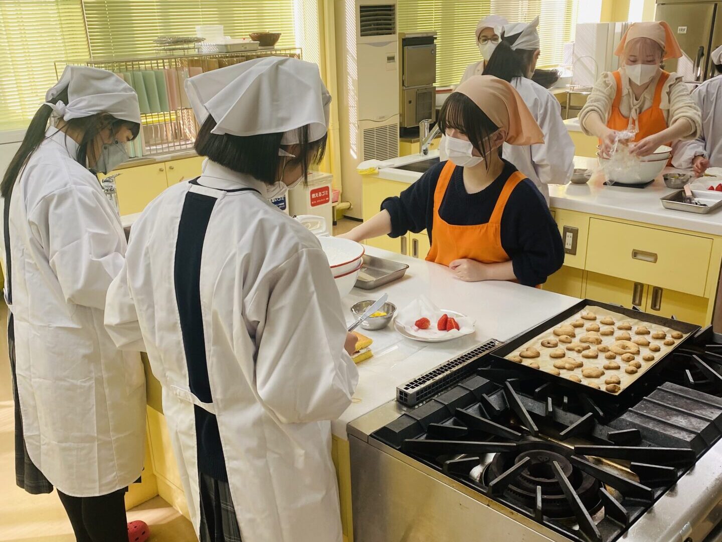 当日は、本学の食物栄養専攻の2年生がサポート役として活躍しました。先輩として声をかけながら、スムーズに講習が進むようお手伝い。さすが2年生!しっかりとしたサポートで、参加者の皆さんも安心してケーキ作りを楽しむことができました。また、プロの製菓技術を学び、ケーキ作りの知識や技術をさらに深め、将来の職業選択も広がる機会となりました。