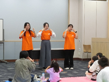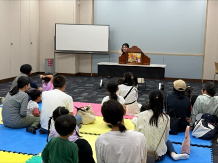 当日は、幼児から小学生、そのご家族まで、たくさんの方々が参加してくれました。手遊びや紙芝居、絵本やペープサートを取り入れた楽しい企画で、学生たちにとっても貴重な学びの機会となりました。何より、子どもたちが笑顔で絵本に親しんでいる姿を見ることができ、学生たちにとっても最高の時間を過ごすことができました。「楽しかった!」と言ってくれる子どもたちと素敵な時間を共有できたことが、一番の幸せです。図書館の職員の方からも「学生が読み聞かせに慣れている様子が伝わり、素晴らしいお楽しみ会になりました」とお褒めの言葉をいただきました。