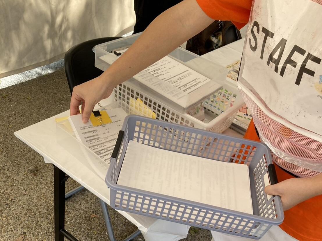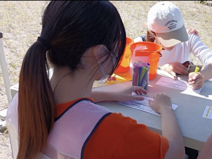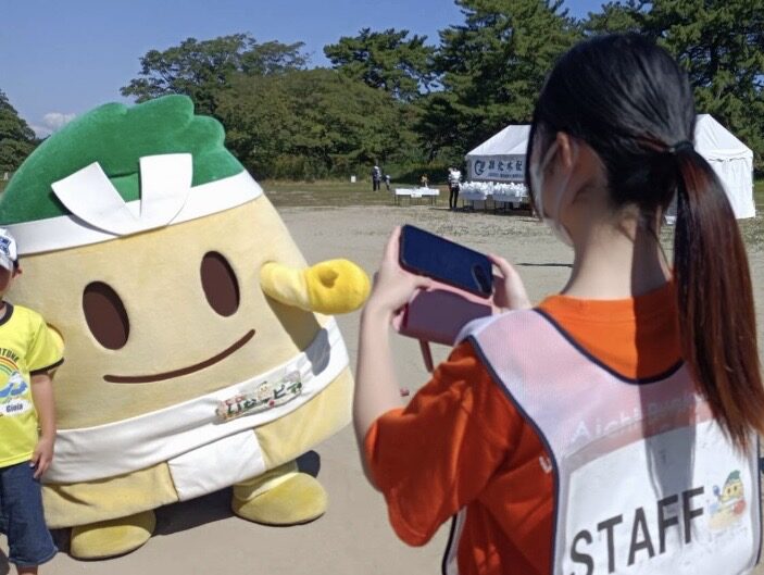 「稲沢サンドフェスタ」は、木曽川特有の河岸砂丘「祖父江砂丘」で、大型砂像が展示され、河岸砂丘の川砂を使った迫力のあるサンドアートを見ることができる稲沢ならではのイベント。稲沢市都市整備課から依頼を受け、来場者への砂像作品に関する案内や、写真撮影の協力、アンケート調査の協力依頼の声掛け、ちびっこ建設機械体験などの受付など、イベントボランティアのスタッフとして、他のボランティア団体の方々と一緒に活動をしました。積極的に来場者とのコミュニケーションをとり、親切丁寧に対応していただきました。