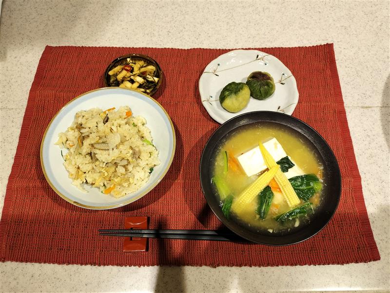 今回の実習では、平野様が加工された割り干し大根を使い、「割り干し大根の炊き込みご飯」と「割り干し大根のごままぶし」の2品を実習しました。また、今年の愛知県第4次食育推進計画の一環として、「食を通じて環境に優しい暮らしを築く取組」をテーマに、食品ロスを防災につなげる工夫も学んでもらおうと、常備食材の活用例として、「カニ缶を使った豆腐蟹あんかけ」「日持ちするさつまいもを使ったおさつきんとん」の2品も実習しました。