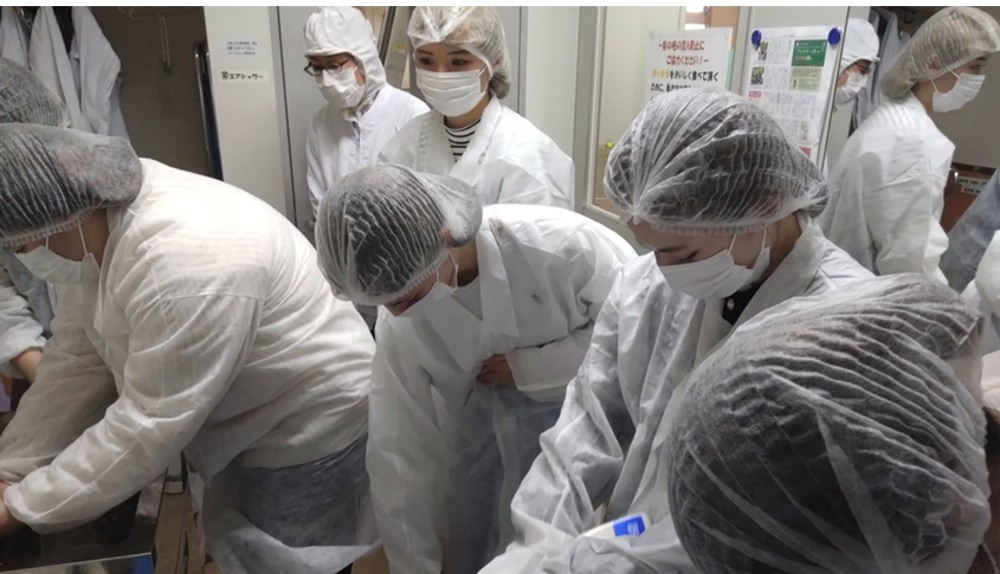 工場に入る前には、念入りな髪の毛やほこりのチェック、手洗い消毒などの衛生管理が徹底がされていることや授産所の利用者が作業しやすいような工夫がたくさんあることを知りました。そして見学を通して「社会の、誰かの、役に立ちたい」という思いから作られた想いもしり、しっかり取り組んでいこうと身が引き締まった時間でした。