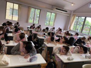 保育実習指導Ⅰ 2022.05.24 幼児教育学科1部1年生は、ABCにこにこルームで ひとりひとり、初めての「手遊び実践」を発表しました。 ピンクの指定エプロンに手作り名札をつけて、先生デビューです! みんな緊張していましたが、それぞれ笑顔で頑張っていて、 実践終了後は真剣に振り返りシートにも取り組んでいました。 入学してまだ2ヶ月ですが、1年生のたまご達は秋の実習に向けて 日に日に成長していること実感しています。