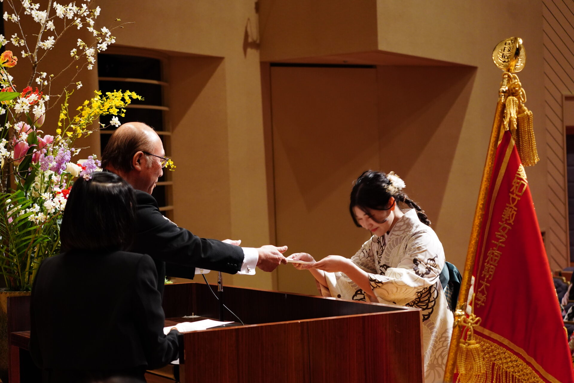 卒業証書を手にした瞬間、皆さんの表情には、新しい未来への決意が輝き、やわらかな春風が、背中をそっと押し、新たな世界へと導いていくようでした。