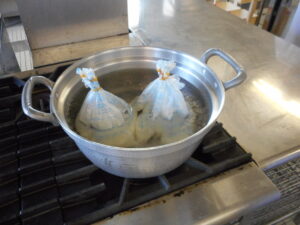 今回は、高密度ポリエチレンの袋(ハイゼックス)を使った米の炊飯を