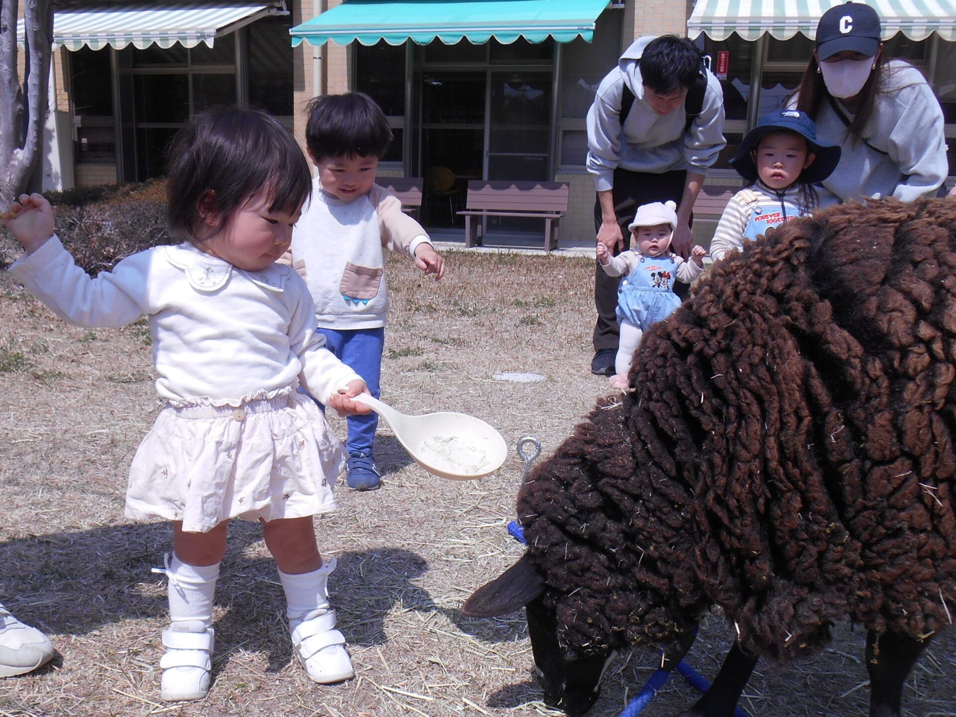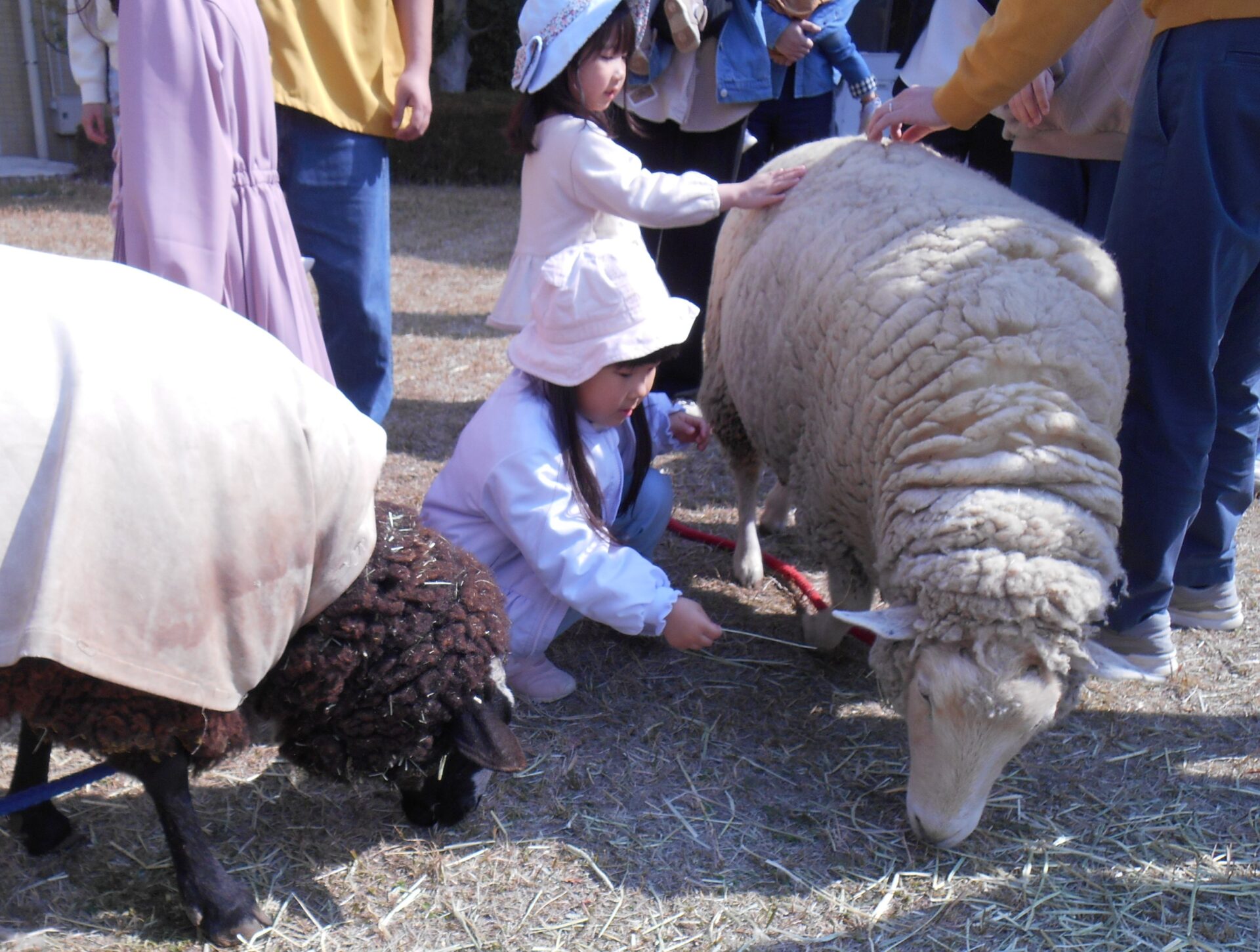 3月22日、お天気に恵まれた中、本学の中庭で「ふれあい羊ひろば」が開催され、文教おやこ園の子どもたちが参加し、かわいい羊たちとのふれあいを楽しみました。