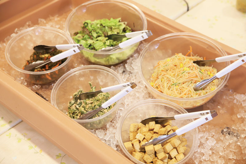 ランチタイムも楽しみな時間ですよね。みんなで囲む食事の時間は、栄養だけではなく幸せも運んでくれます。家からお弁当を持って来たり、コンビニで買ったり、学食を利用したり、学生のお昼ごはんはさまざまです。本学の学食(文教レストラン)では、生活文化学科食物栄養専攻の教員考案のレシピなど、「食育」を実践する健康的で美味しいランチを提供しています。ランチは、お惣菜なども選べるサラダバー付きで、お野菜もしっかりとることができます。