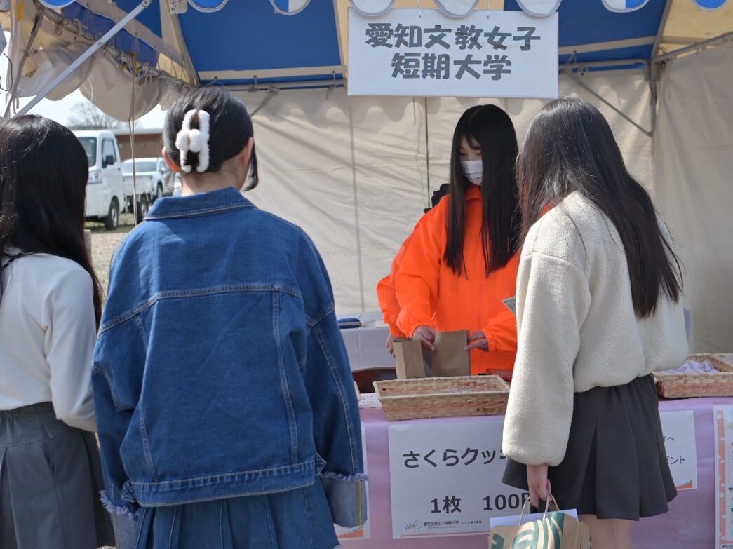 4月5日、稲沢市平和町で開催された「第31回へいわさくらまつり」に、食物栄養専攻の2年生と有尾先生が参加し、手作り桜クッキーを販売しました。平和町の誇る桜並木「さくらネックレス」はちょうど見ごろを迎え、会場にはたくさんの方々が訪れ、春の訪れを満喫していました。