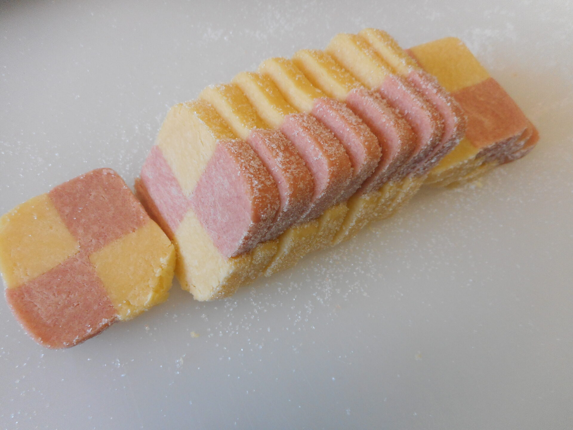 本学からは、桜のパウダーを練り込んだ特製の桜クッキーを提供。プレーン生地と桜生地を竿状に整え、4等分にして市松模様に組み合わせて焼き上げたこだわりの一品。桜生地はやさしいピンク色に仕上がり、春らしい見た目と風味が楽しめるクッキーになりました。