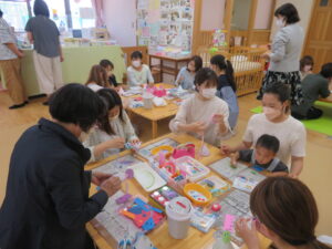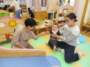 おやこ園でママさんたち・お子さんたちと触れ合って、保育の現状を知っていただきました。