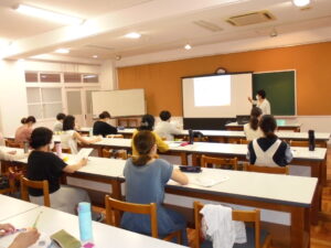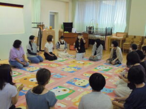 公立幼稚園で園長を務めていた学科長が担当し、現場の状況を踏まえた保育の在り方について学んでいただきました。