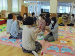 その後は、受講者全員でお手玉遊びです。これがなかなか難しいけれど、楽しい。