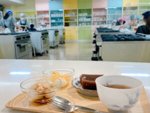 授業紹介 調理学実習 2022.06.22 生活文化専攻の2年生 調理実習では和菓子や和洋食 アレルギー対応食など実習をします。 今回は和菓子の調理で水羊羹 豆腐白玉 わらびもちを作りました。 美味しくできたので、学長先生にも召し上がっていただきました。 特に水羊羹が好評ででした。