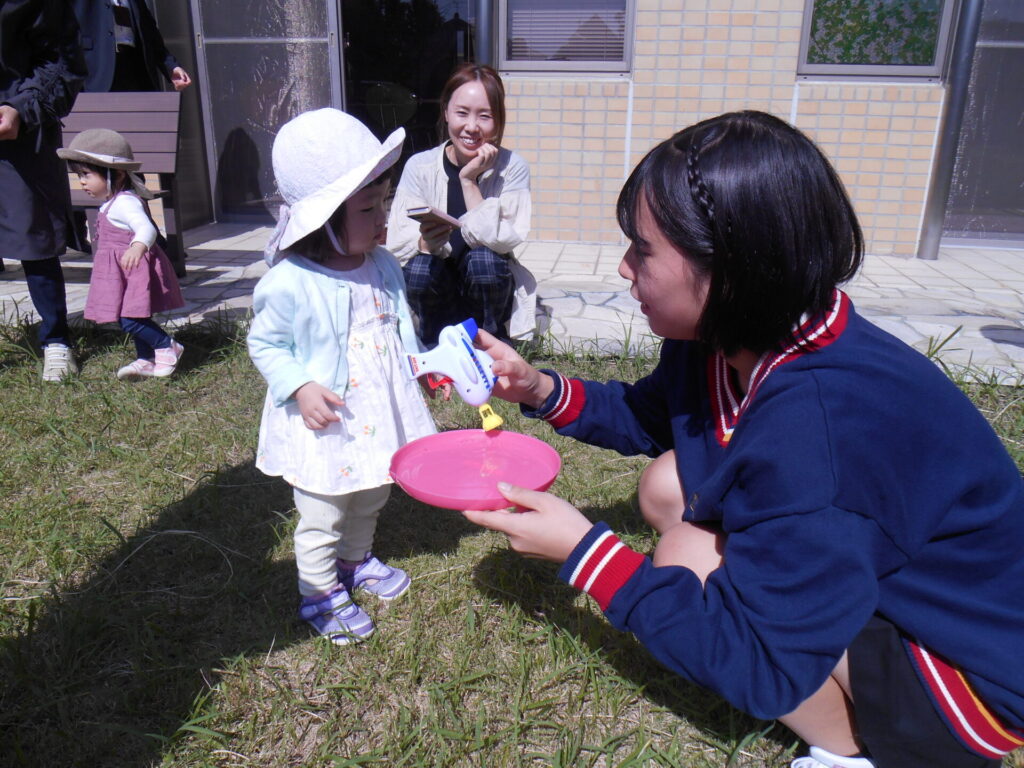 秋晴れの中、幼児教育学科1部1年の学生が、文教おやこ園の……